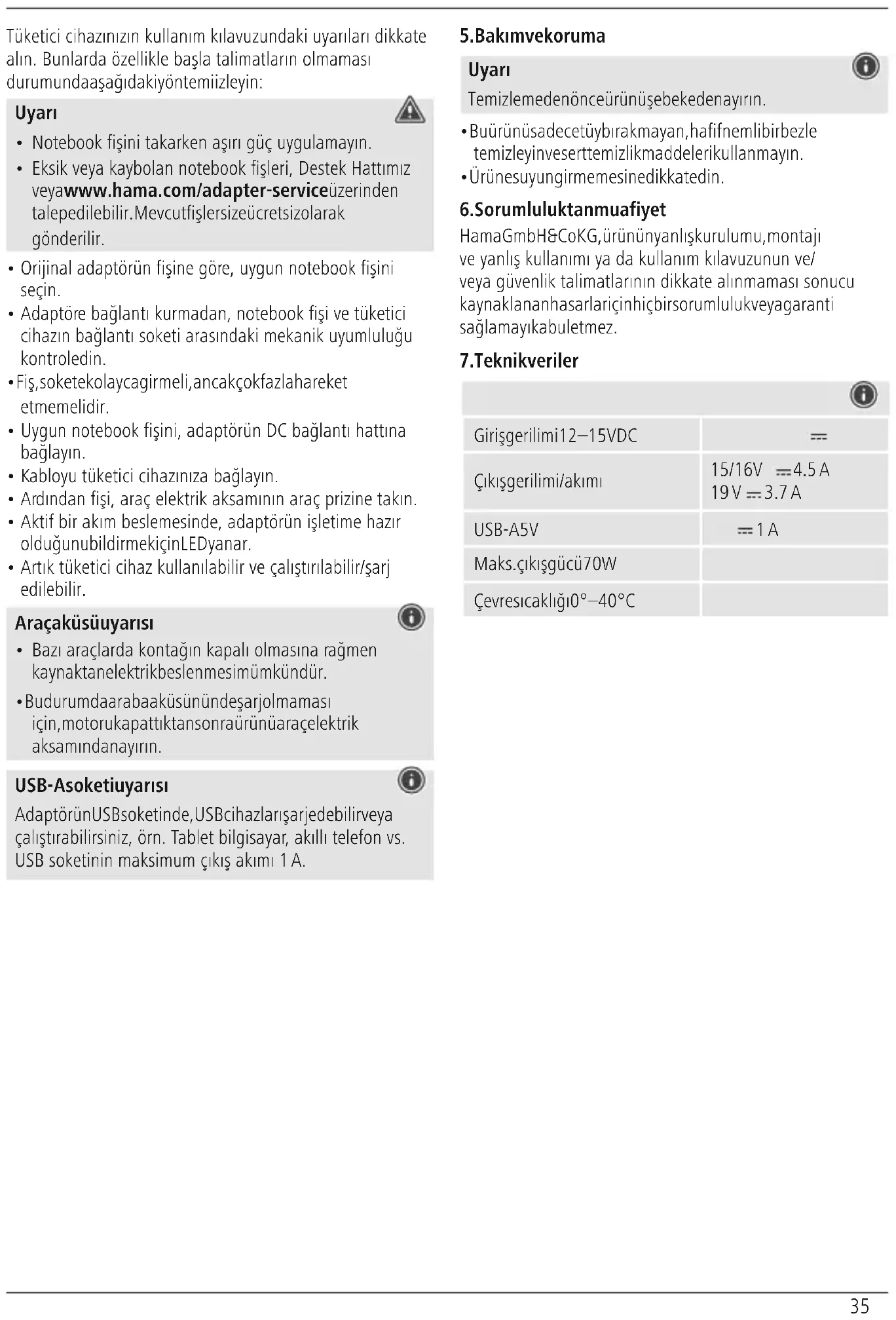 - Puuttuvia tai hävinneitä kannettavan tietokoneen pistokkeita voi tiedustella asiakaspalvelustamme tai osoitteesta www.hama.com/adapter-service. Saatavilla olevat pistokkeet toimitetaan maksutta.