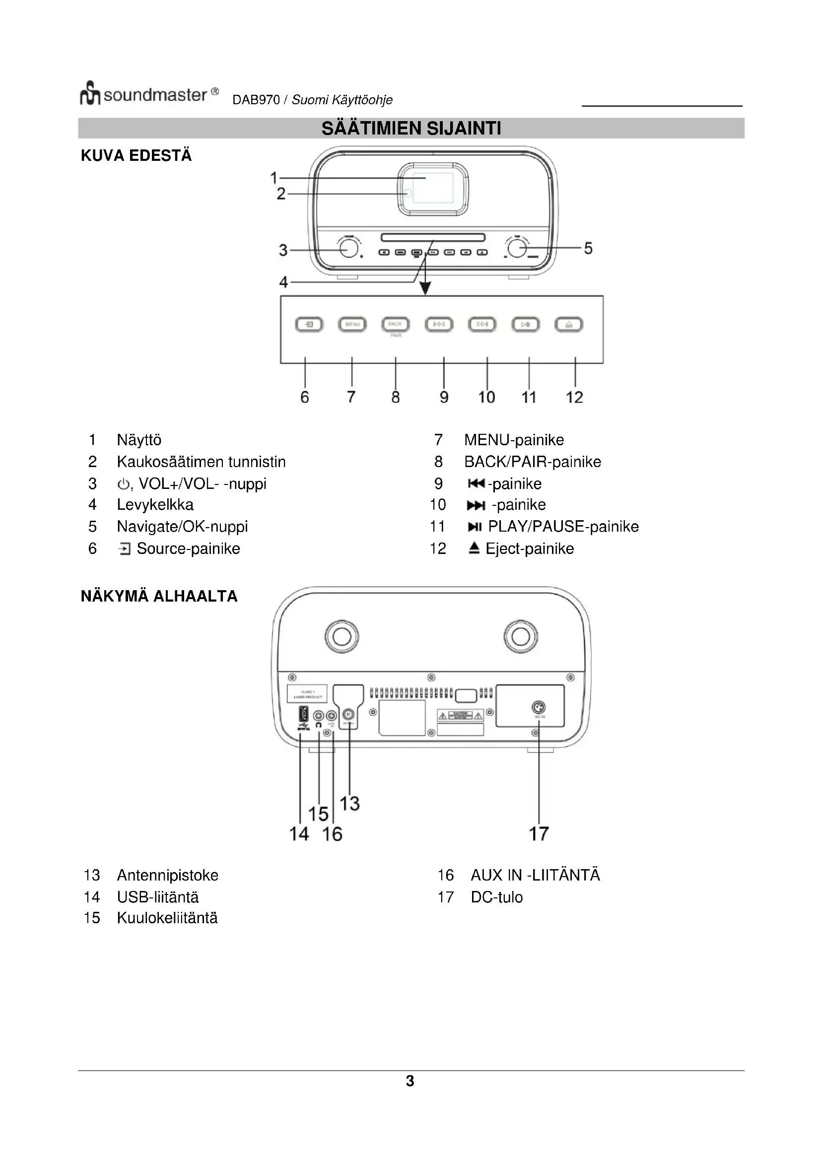 KuulokeliitäntäDAB970 / Suomi Käyttöohje