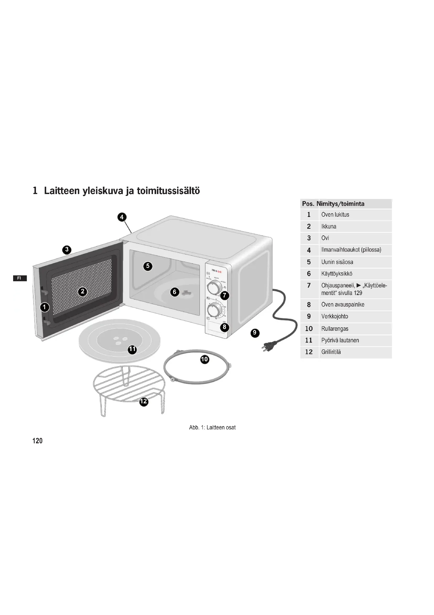 Käyttöelementit 1 Tehon/yhdistelmätoi- minnon/grillitoiminnon asteikko