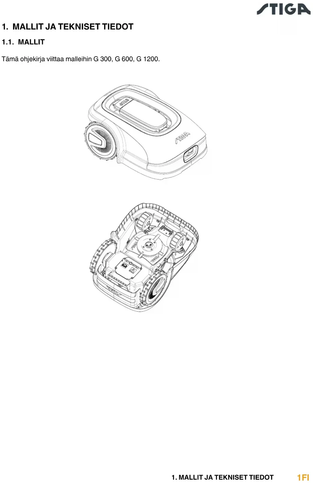 1.1. MALLIT Tämä ohjekirja viittaa malleihin G 300, G 600, G 1200.2 FI