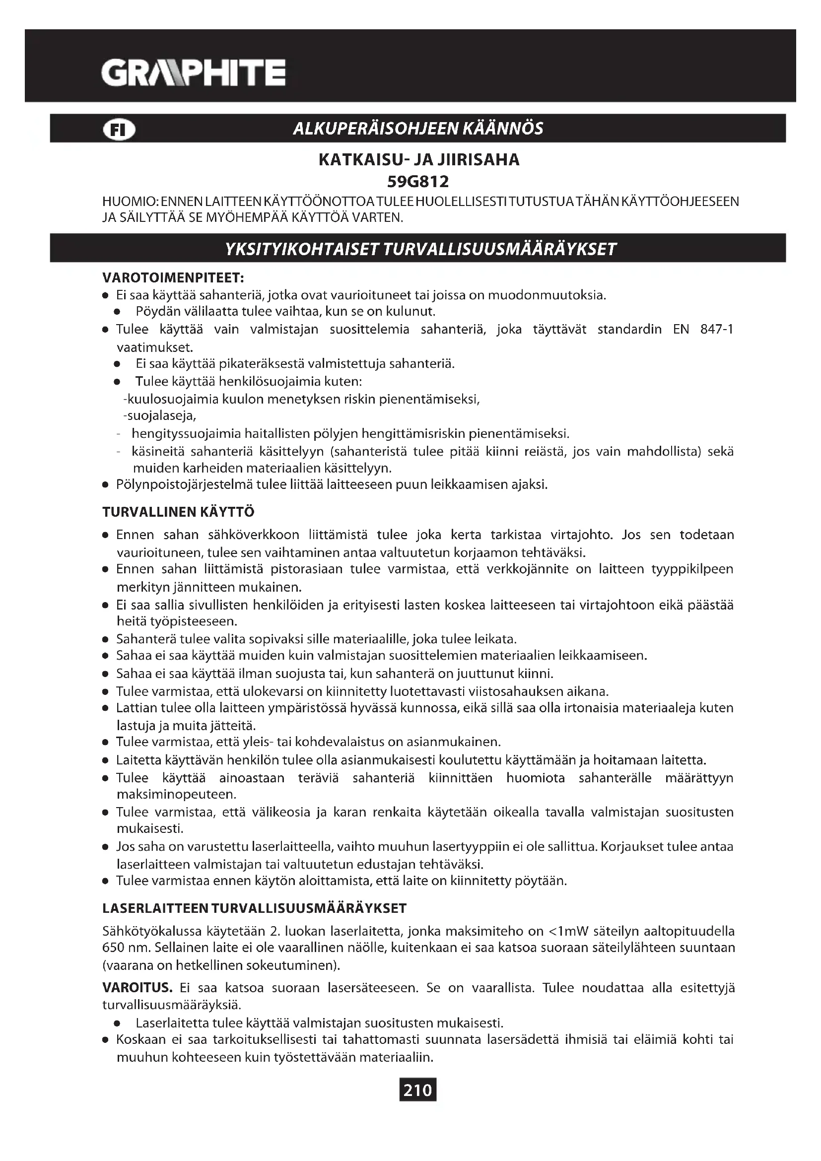 59G812 - Saha Graphite - Ilmainen käyttöohje ja opas