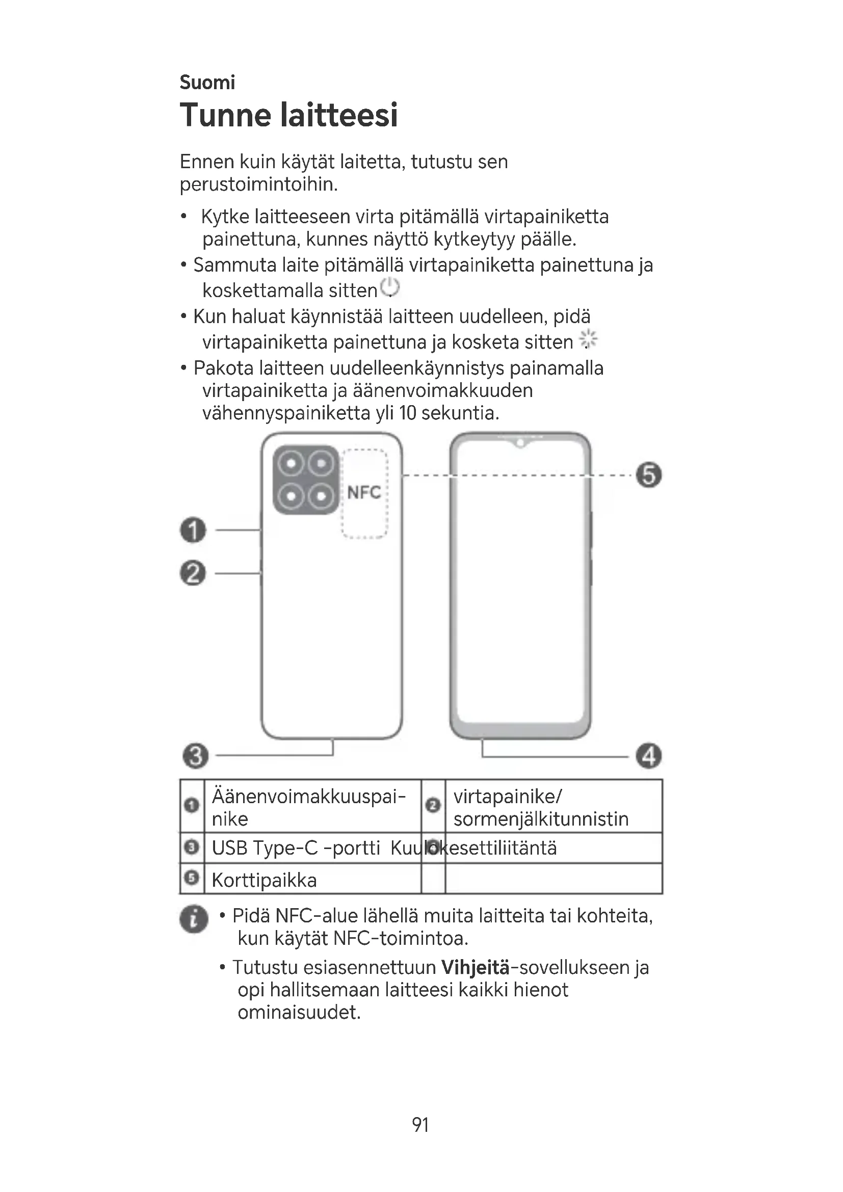 - Tutustu esiasennettuun Vihjeitä-sovellukseen ja opi hallitsemaan laitteesi kaikki hienot ominaisuudet. 91Aloittaminen