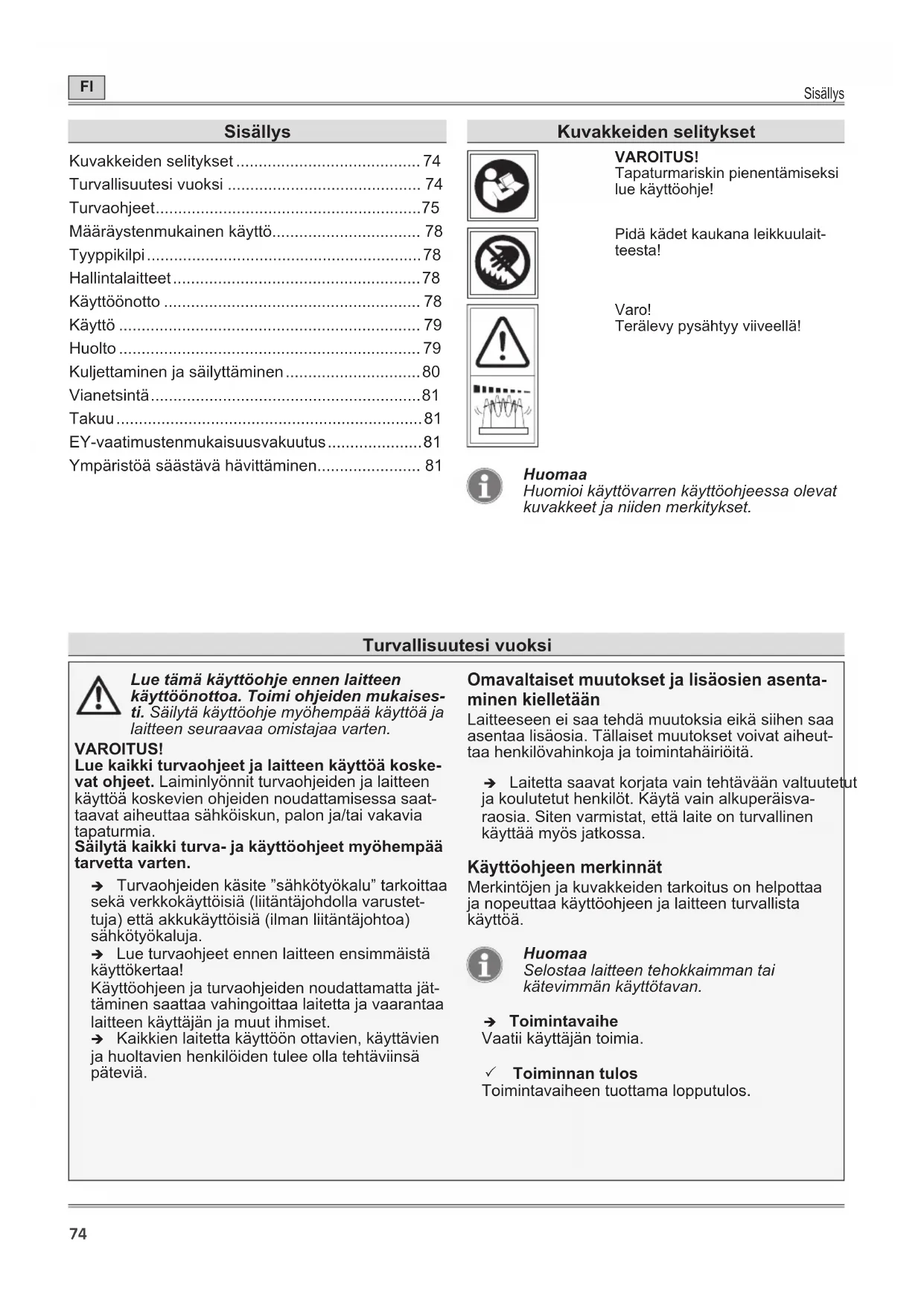 - Turvallisuutesi vuoksi p. 74