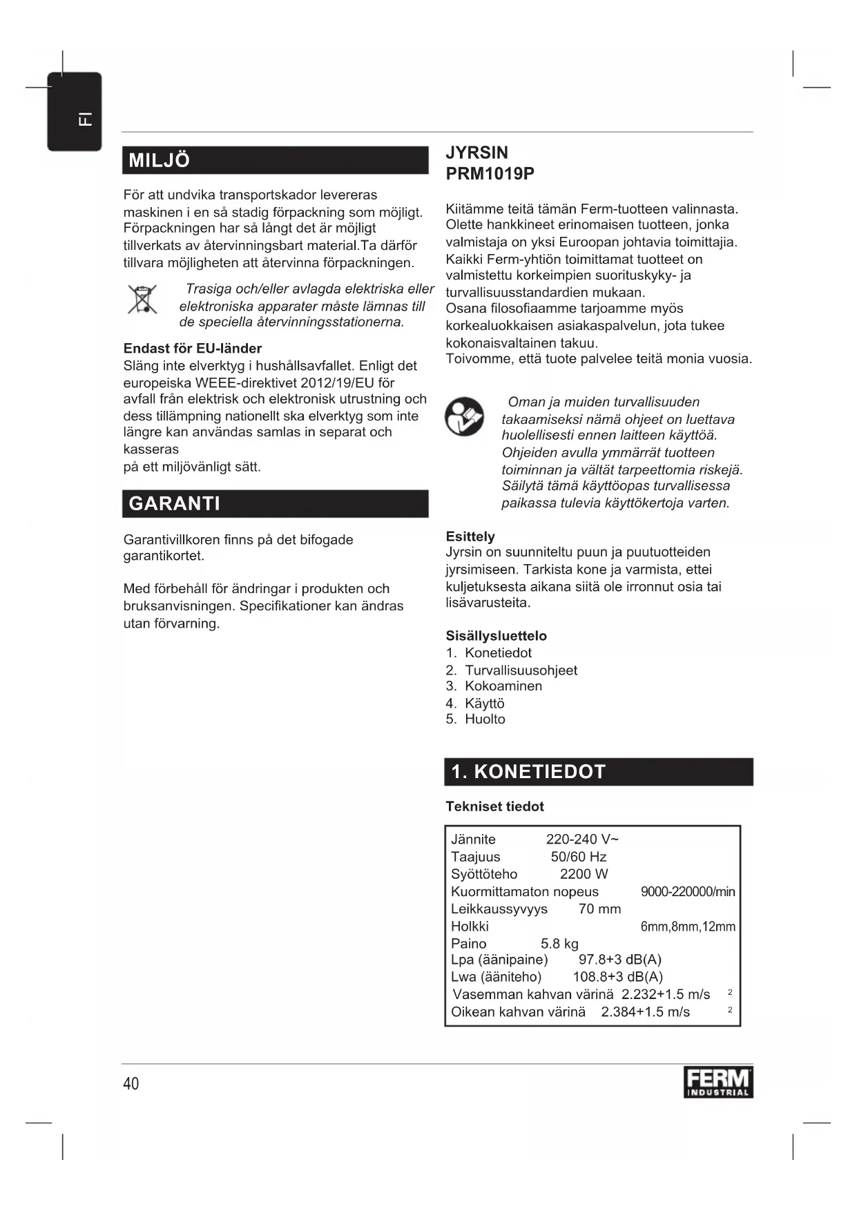 KÄYTTÖOHJE PRM1019P Ferm