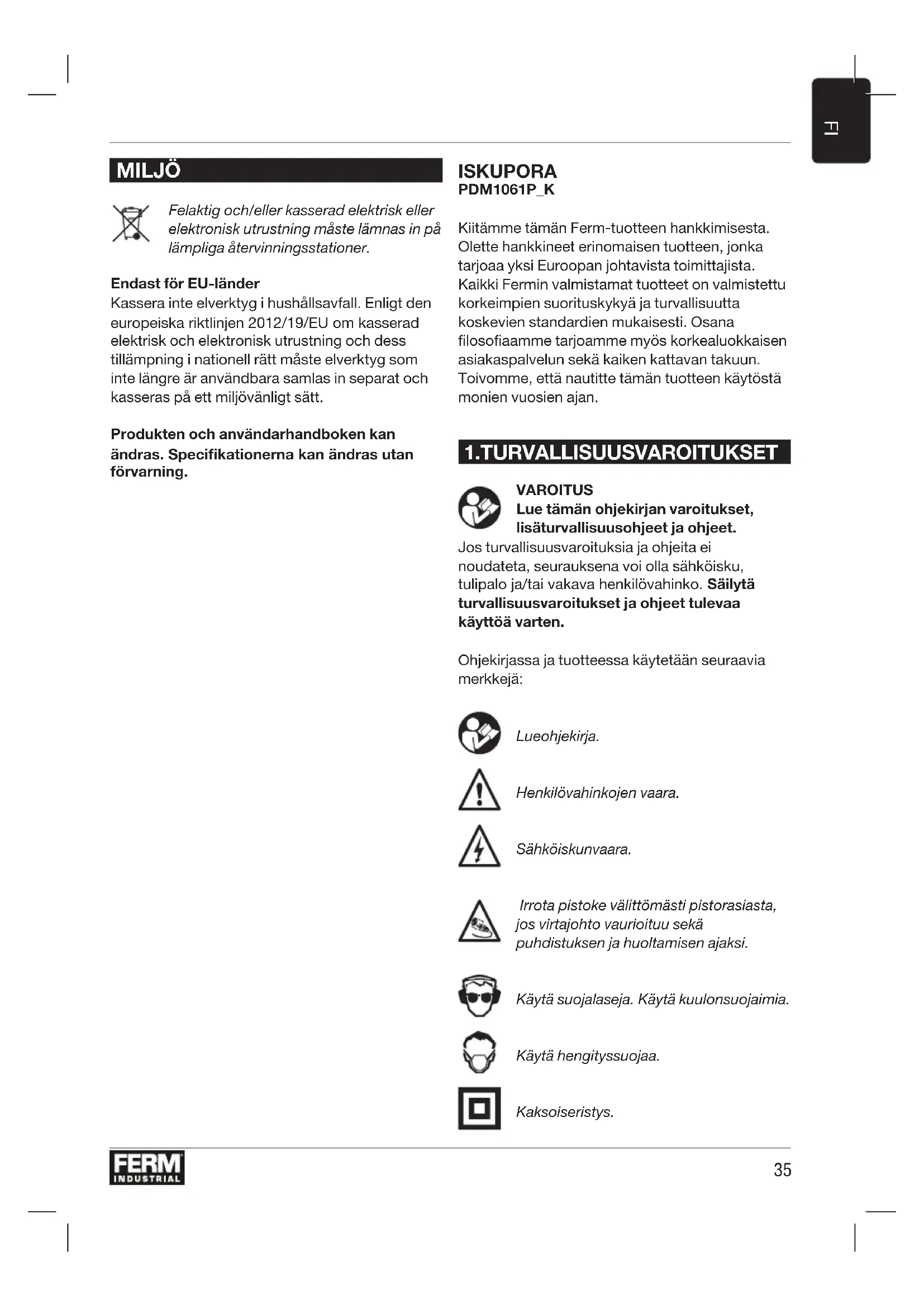 KÄYTTÖOHJE PDM1061P_K Ferm