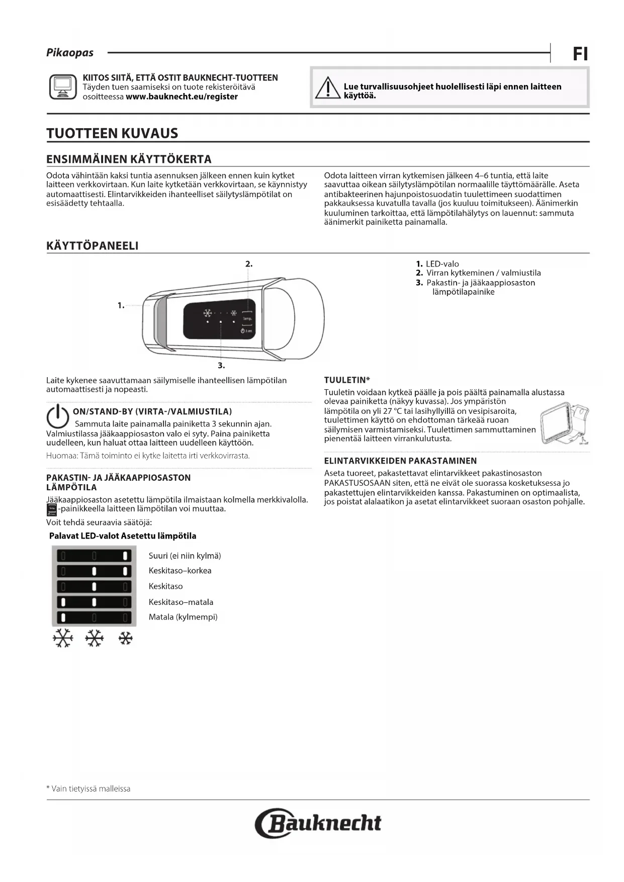 Täyden tuen saamiseksi on tuote rekisteröitävä osoitteessa www.bauknecht.eu/register Lue turvallisuusohjeet huolellisesti läpi ennen laitteen käyttöä. TUOTTEEN KUVAUS