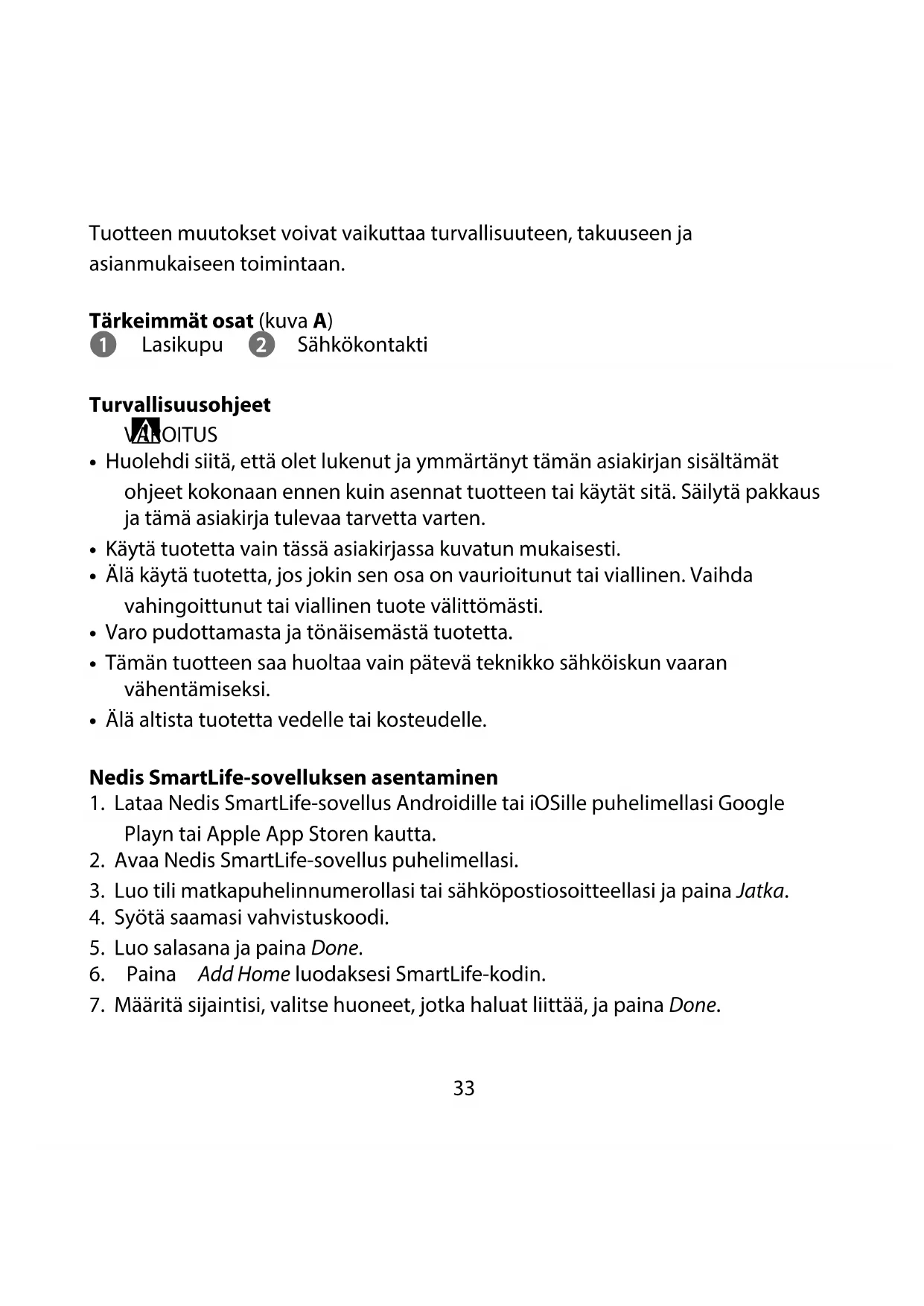 - Älä altista tuotetta vedelle tai kosteudelle. Nedis SmartLife-sovelluksen asentaminen