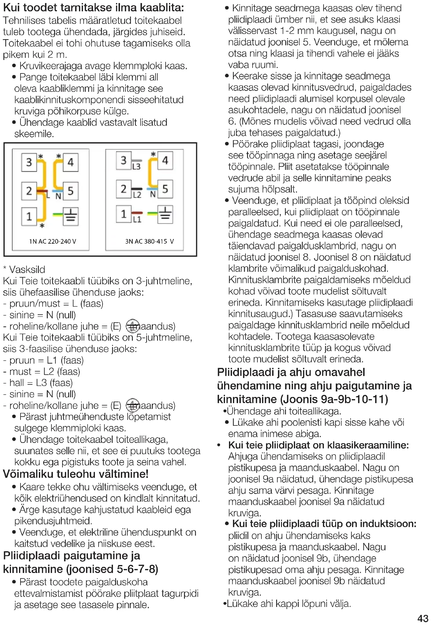 - Laite on asennettava paikallisten sähkömääräysten mukaan.