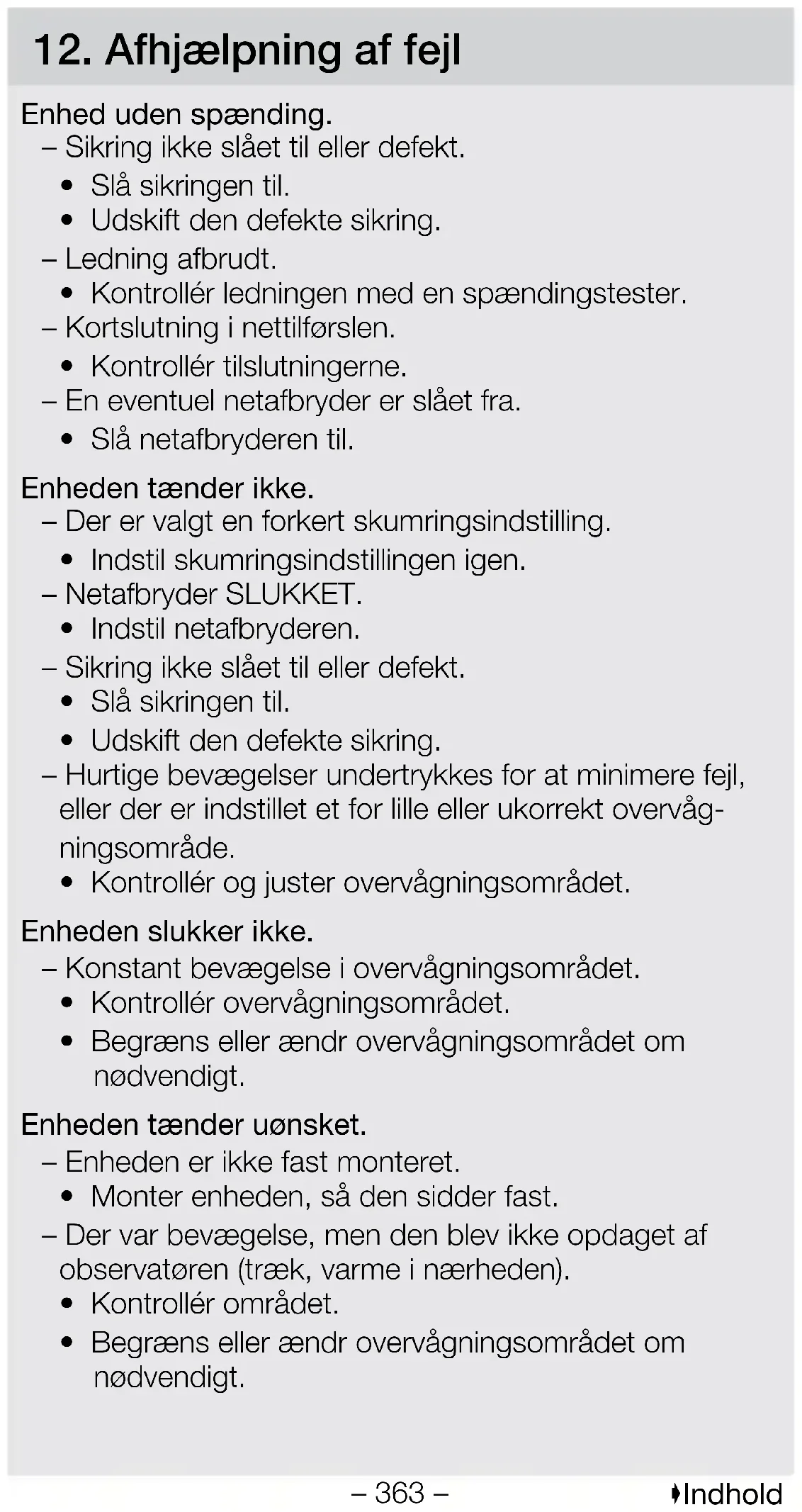 - Tarkista ja säädä toiminta-alue. Laite ei kytkeydy pois. – Jatkuvaa liikettä toiminta-alueella.