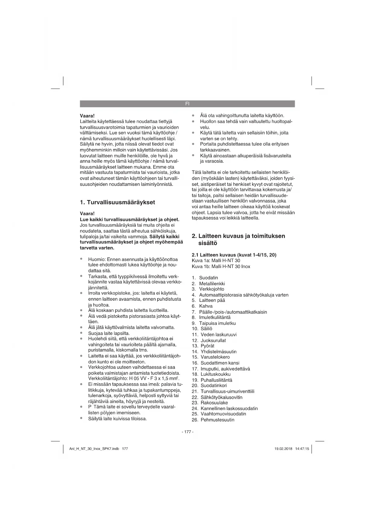 Varoitus! Tarkistakaa ennen käyttöönottoa, että tyyppikilven tiedot täsmäävät verkkotietojen kanssa. Anl_H_NT_30_Inox_SPK7.indb 178Anl_H_NT_30_Inox_SPK7.indb 178 19.02.2018 14:47:1519.02.2018 14:47:15FI