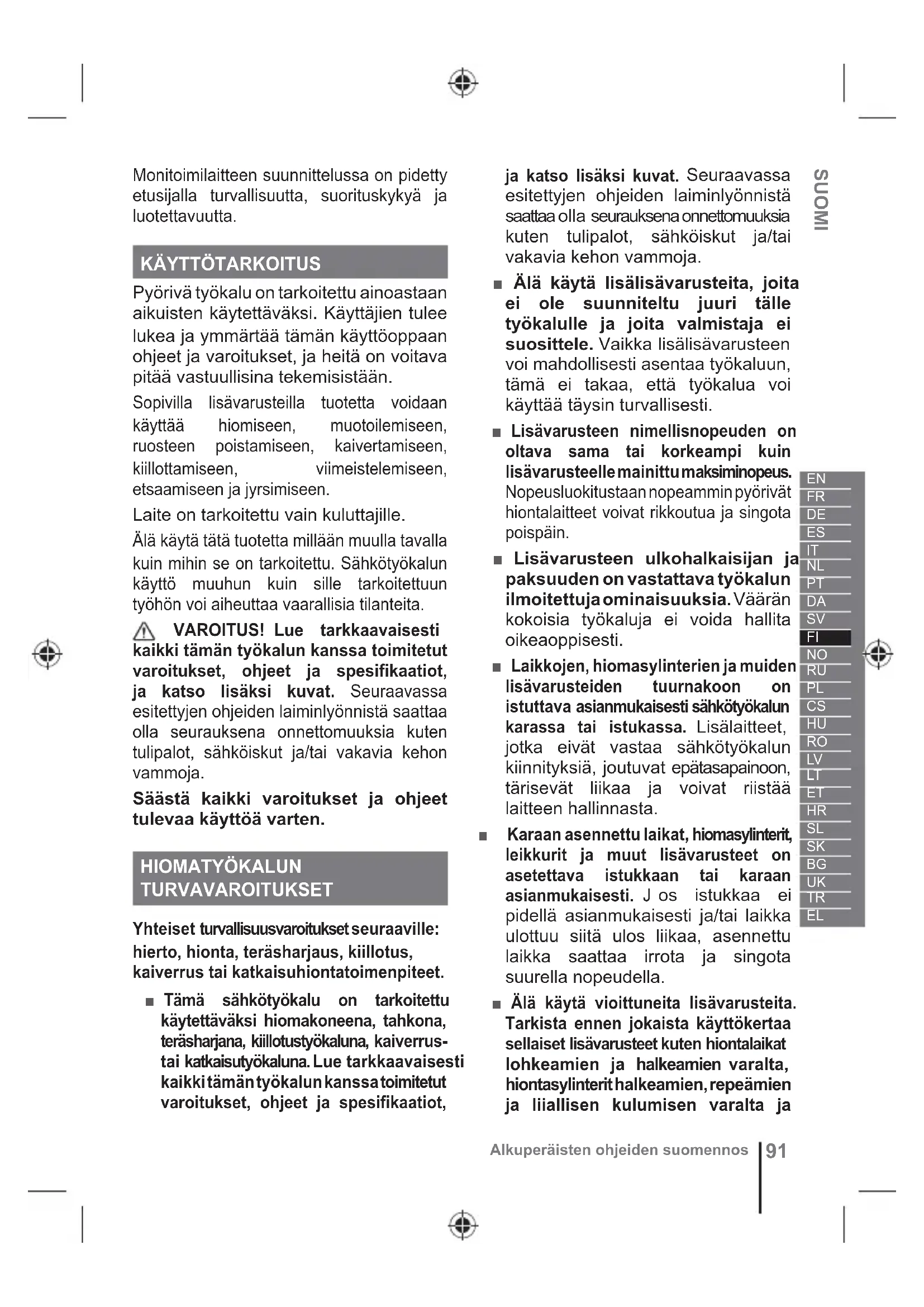 Översättning av de ursprungliga instruktionernaMonitoimilaitteen suunnittelussa on pidetty etusijalla turvallisuutta, suorituskykyä ja luotettavuutta.