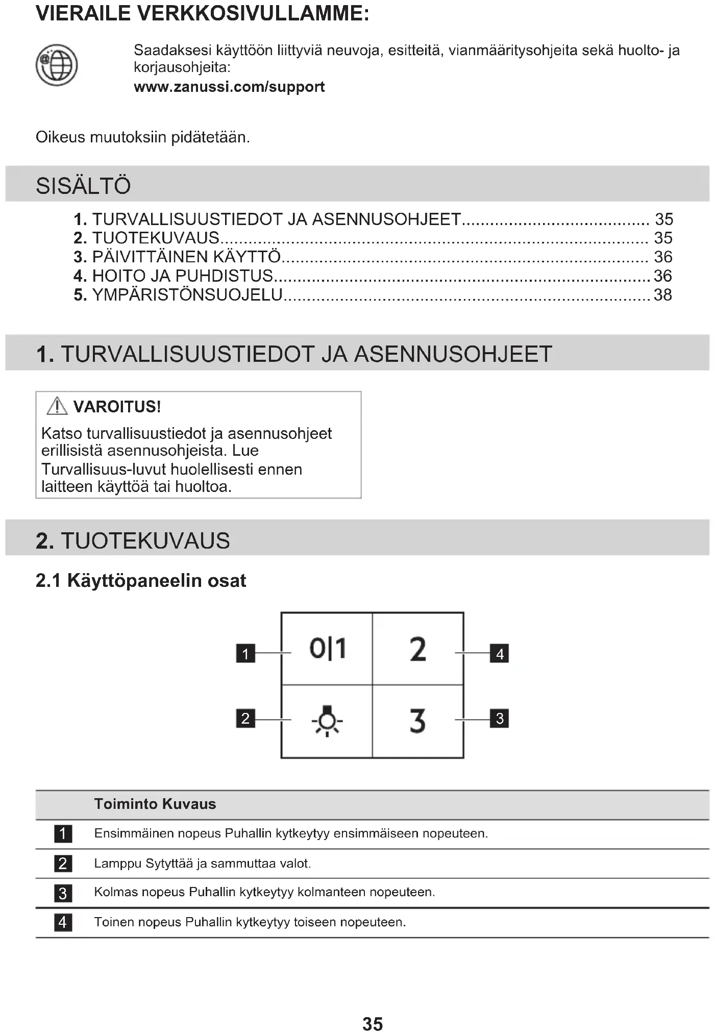 ZFP619K - Liesituuletin ZANUSSI - Ilmainen käyttöohje ja opas
