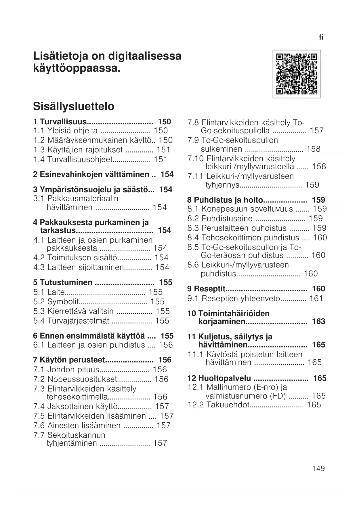 Lisätietoja on digitaalisessa käyttöoppaassa. Sisällysluettelo 1 Turvallisuus..............................150