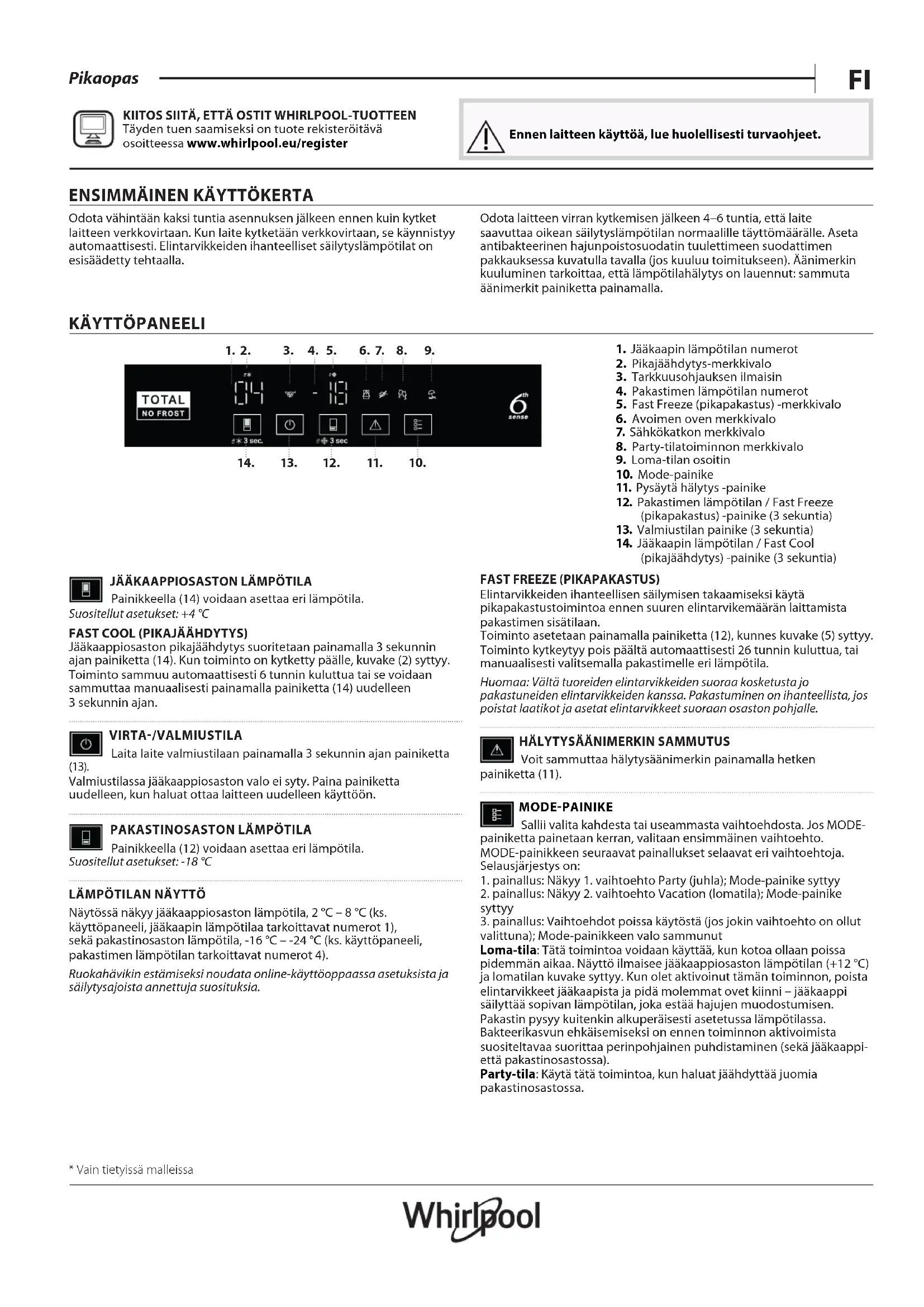 Täyden tuen saamiseksi on tuote rekisteröitävä osoitteessa www . whirlpool . eu/ register Ennen laitteen käyttöä, lue huolellisesti turvaohjeet.