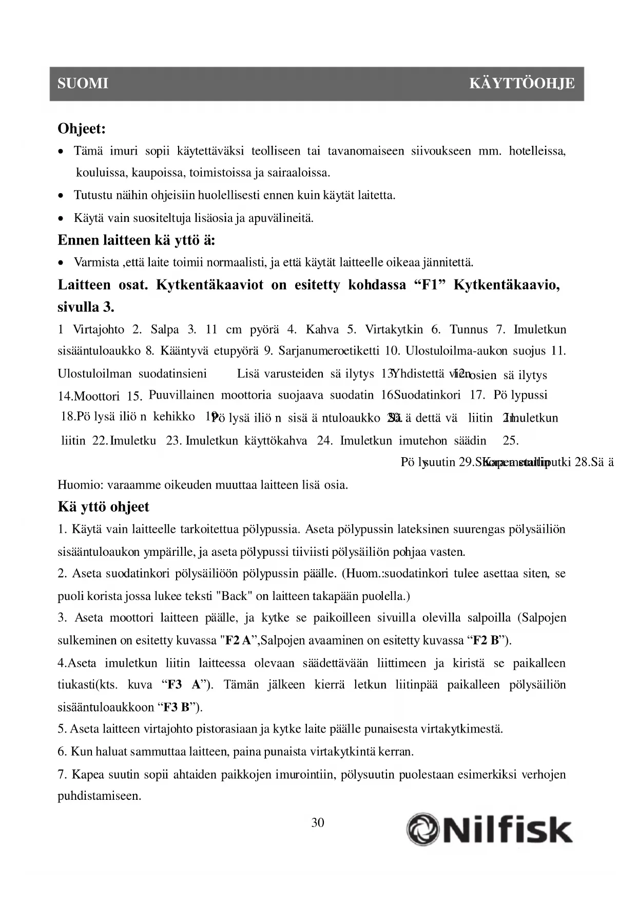 KÄYTTÖOHJE VP100 NILFISK