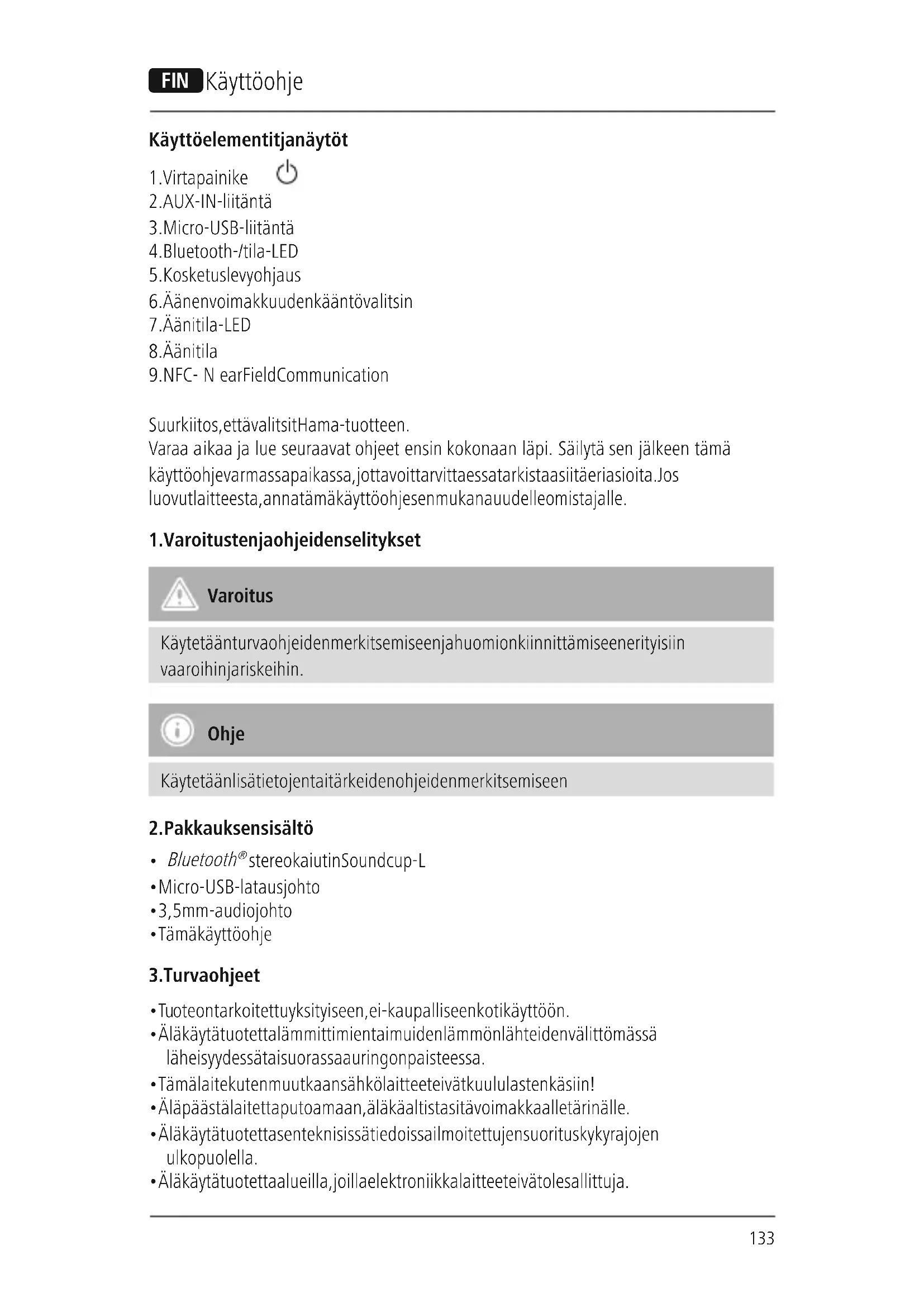 - Huomioi ympäristösi. Suuret äänenvoimakkuudet voivat häiritä ympäristöä tai aiheuttaa haittoja.