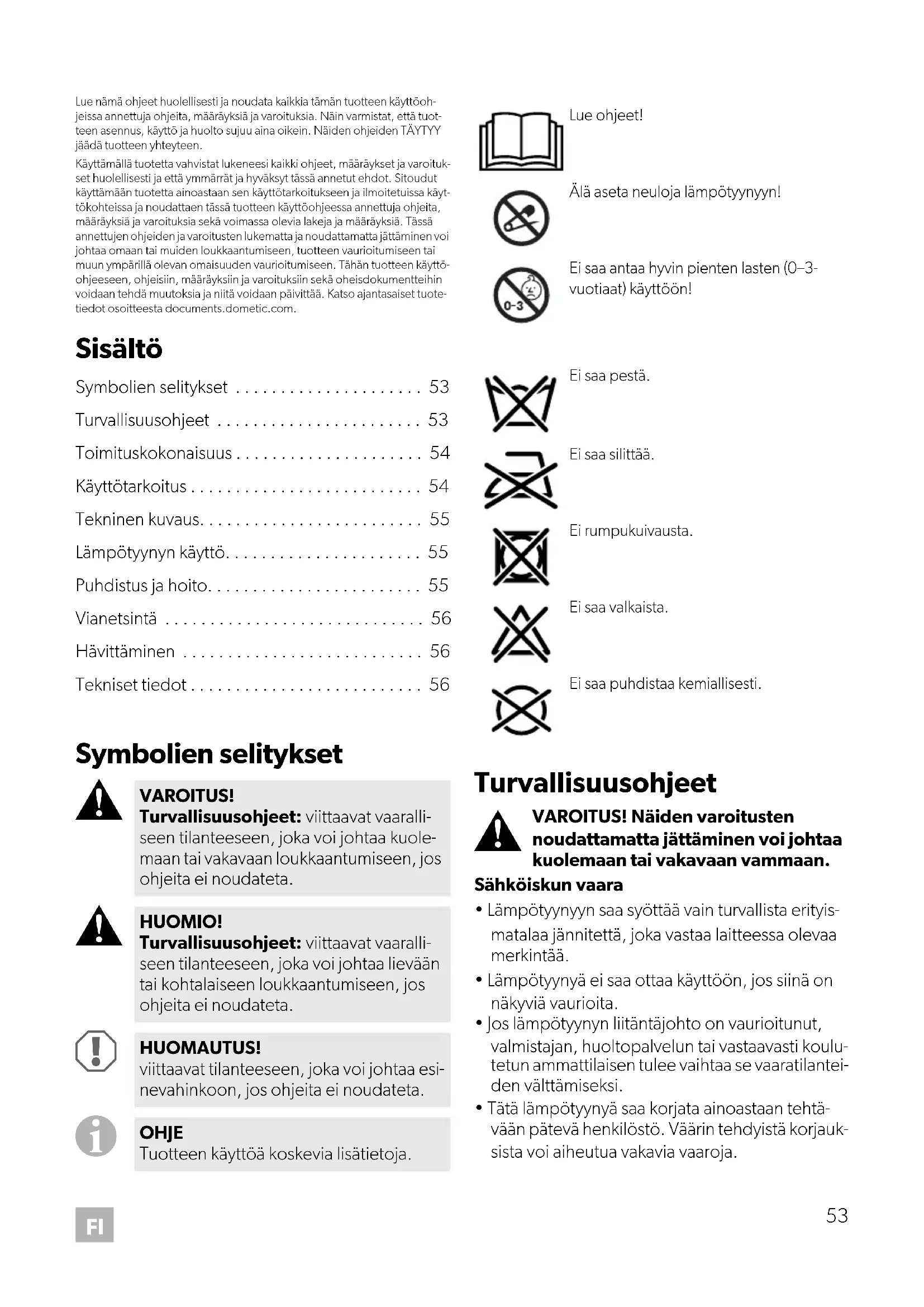 - Turvallisuusohjeet p. 53