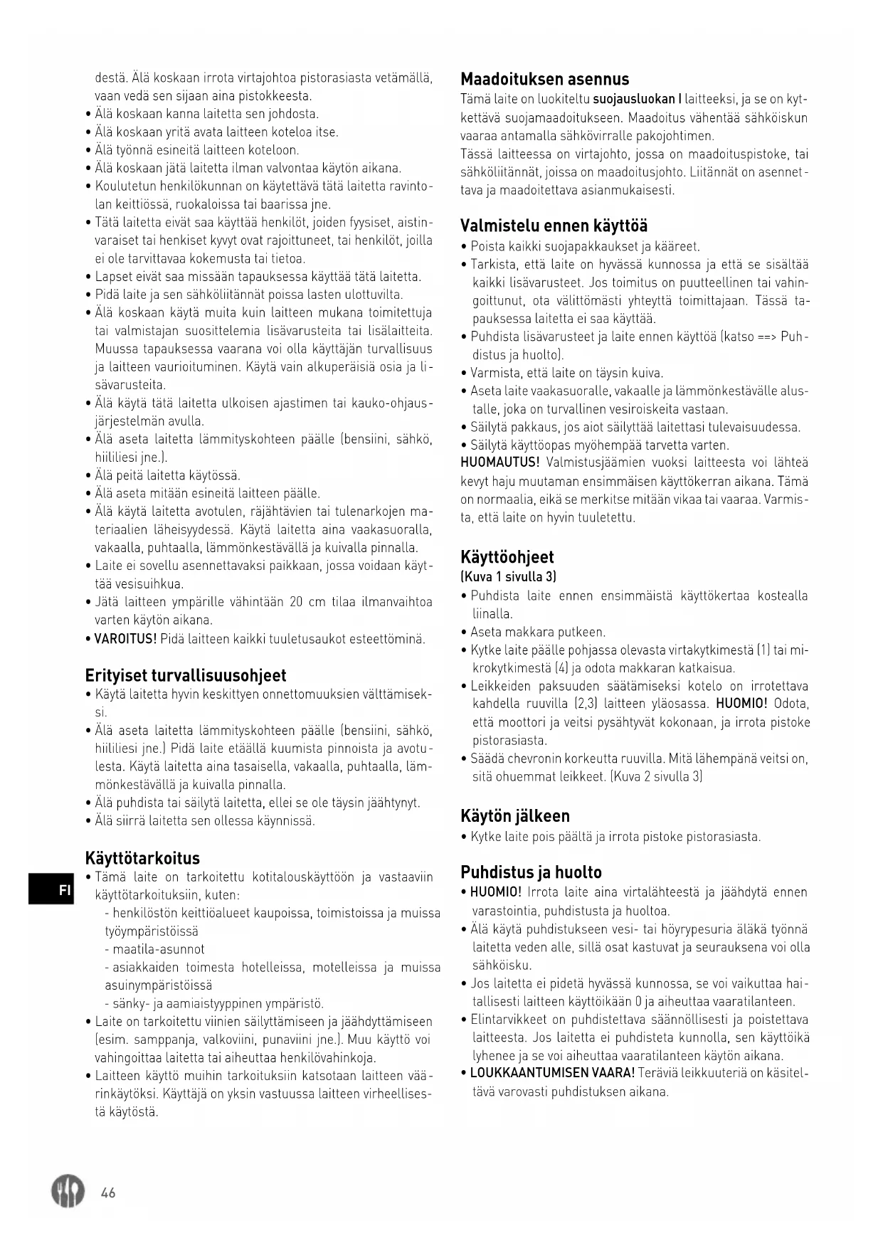 tava ja maadoitettava asianmukaisesti. Valmistelu ennen käyttöä