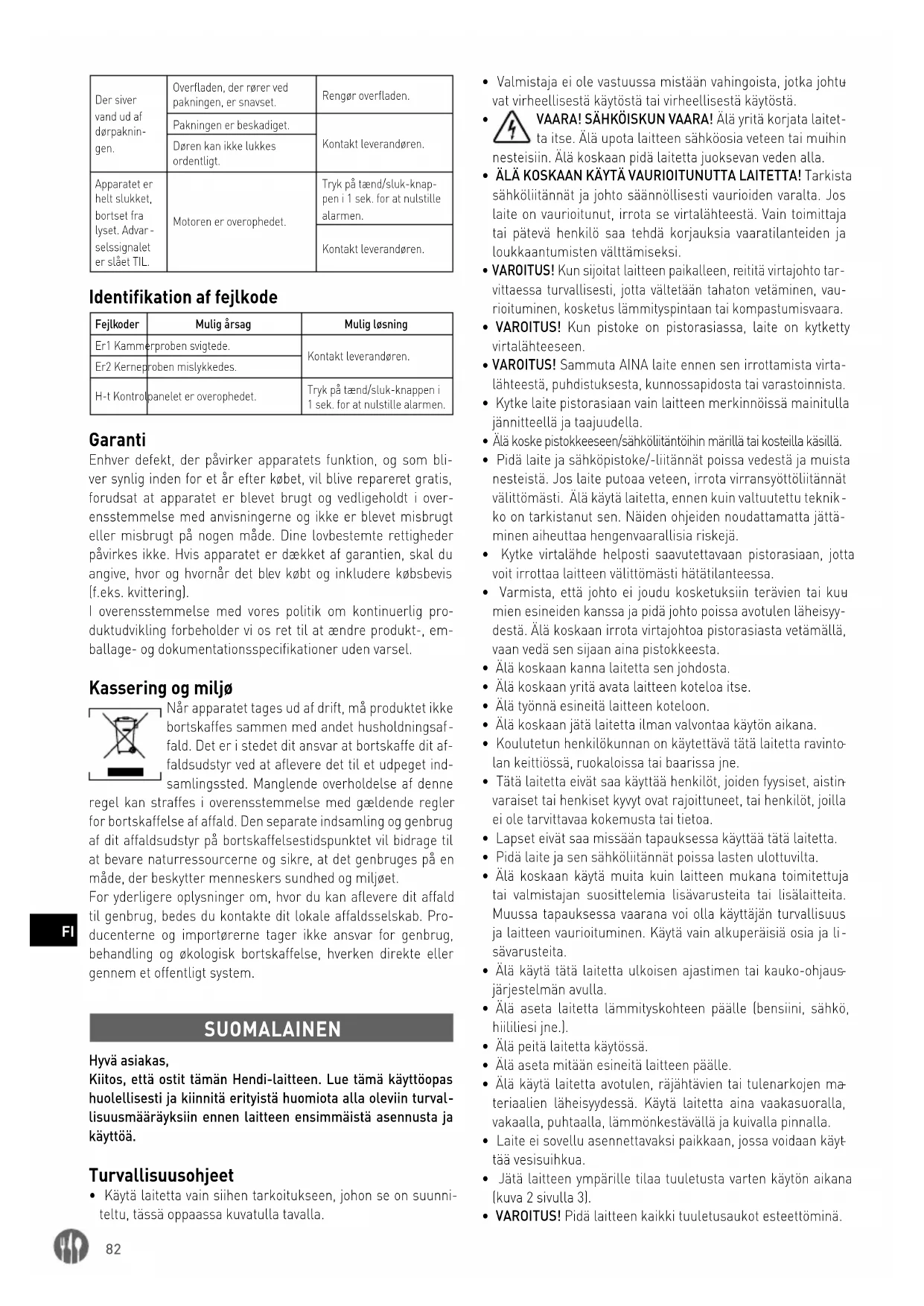ducenterne og importørerne tager ikke ansvar for genbrug, behandling og økologisk bortskaffelse, hverken direkte eller gennem et offentligt system. SUOMALAINEN Hyvä asiakas, Kiitos, että ostit tämän Hendi-laitteen. Lue tämä käyttöopas huolellisesti ja kiinnitä erityistä huomiota alla oleviin turval