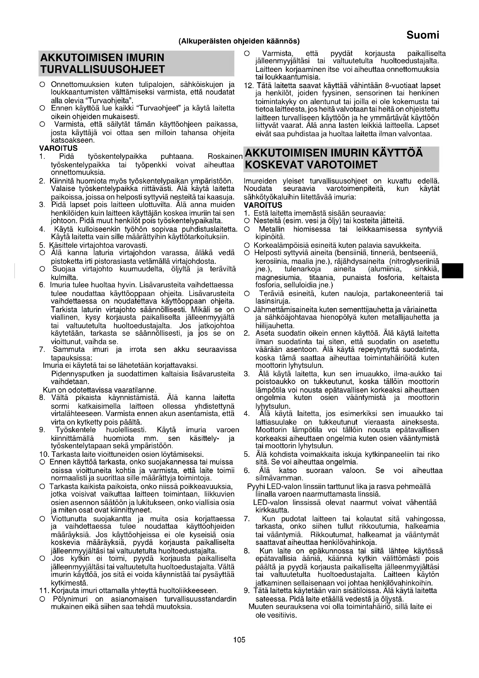 AKKUTOIMISEN IMURIN KÄYTTÖÄ