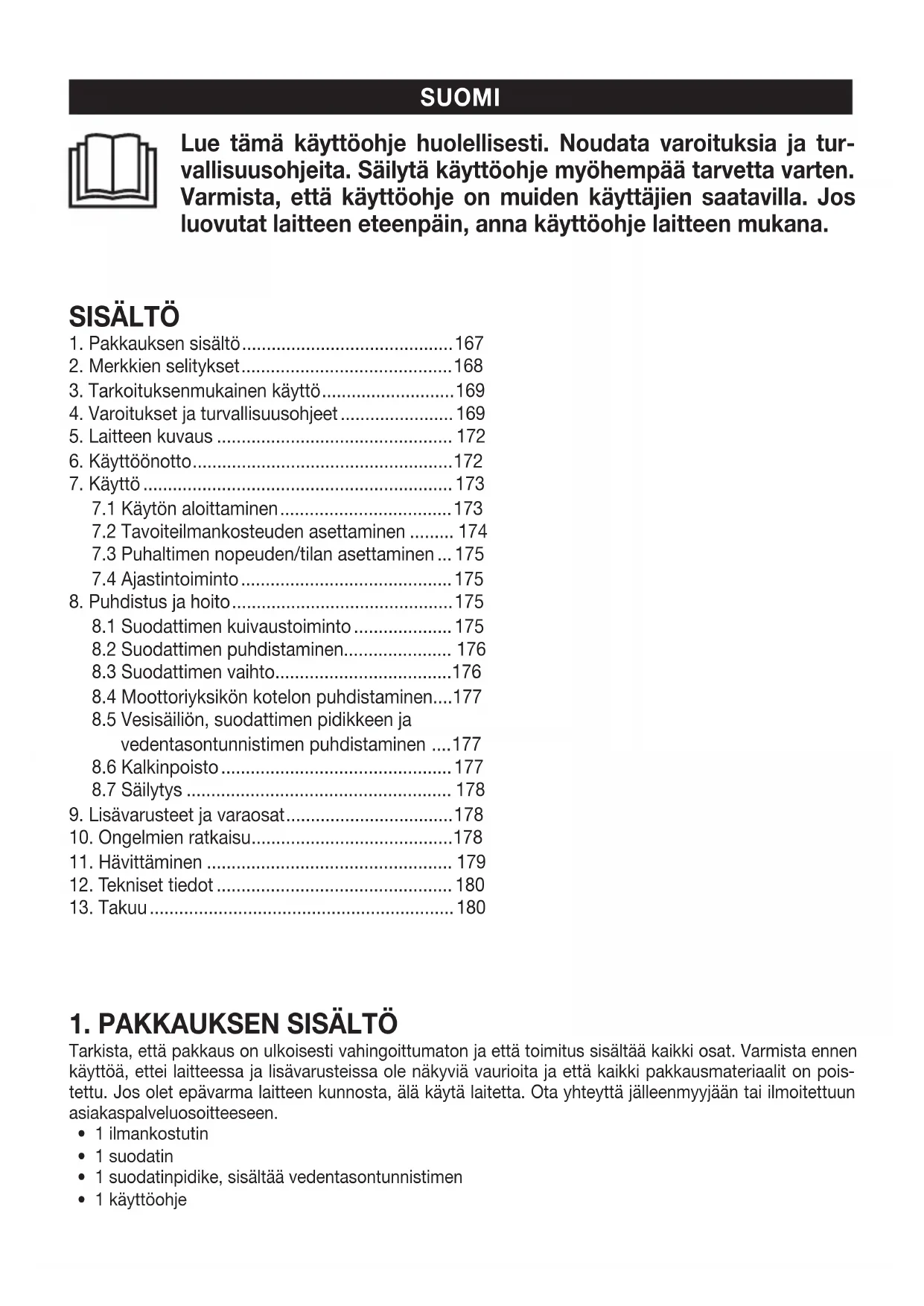 8.2 Suodattimen puhdistaminen...................... 176