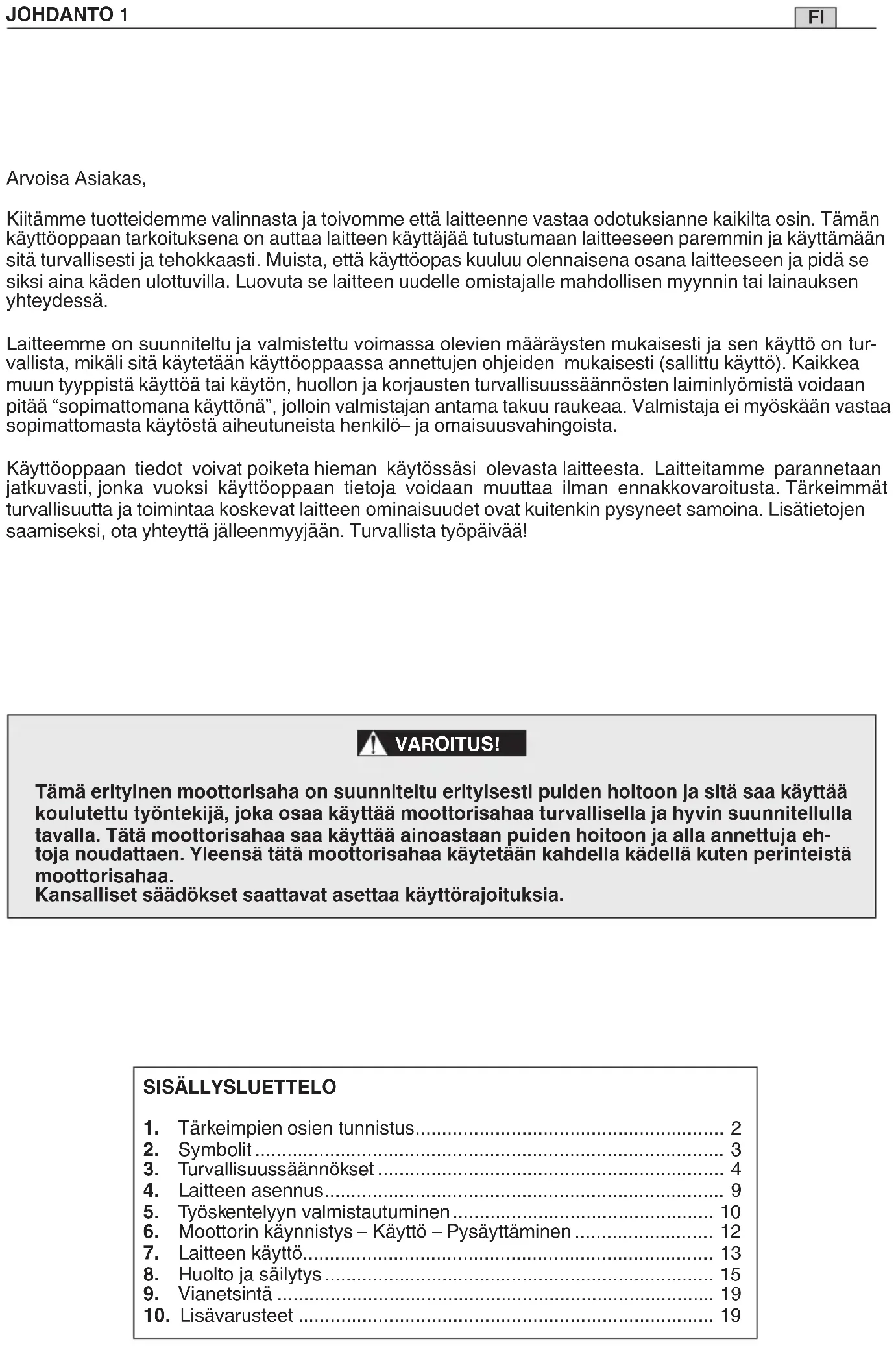 9) Tämä moottorisaha soveltuu ainoastaan henki-