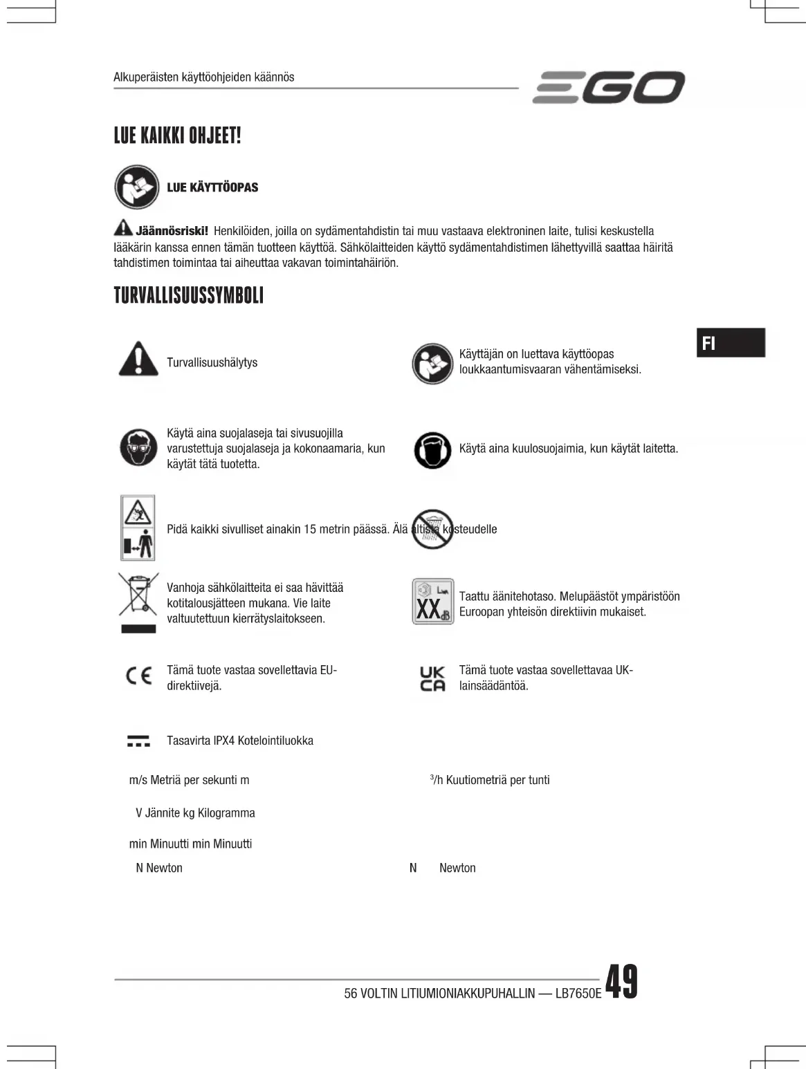 LB7650E - Puhallin EGO - Ilmainen käyttöohje ja opas