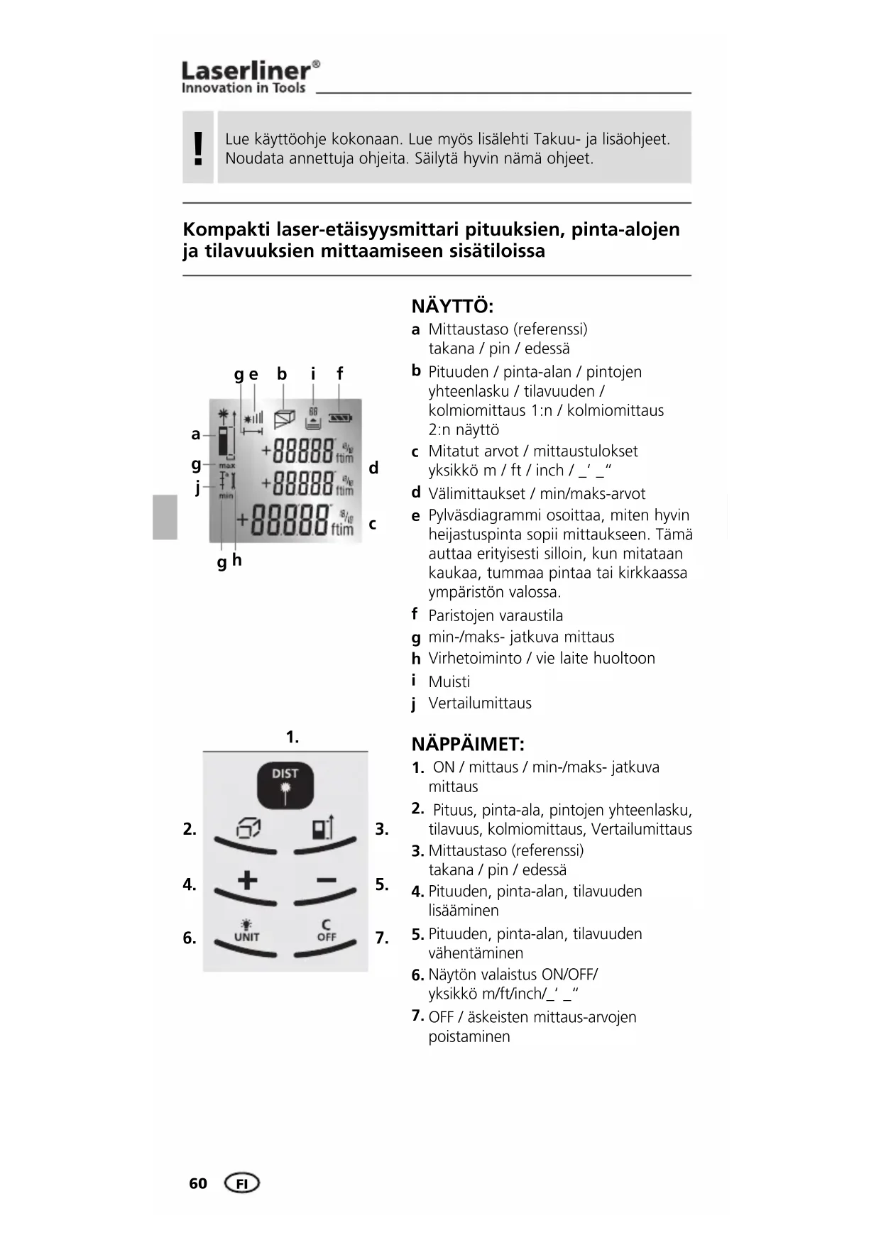 Löydä laitteen käyttöohje ilmaiseksi DistanceMaster Home Laserliner PDF-muodossa.