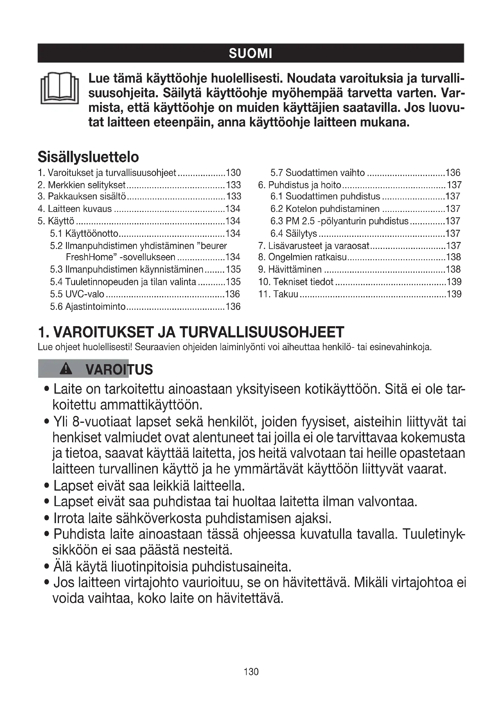 1. Varoitukset ja turvallisuusohjeet ...................130