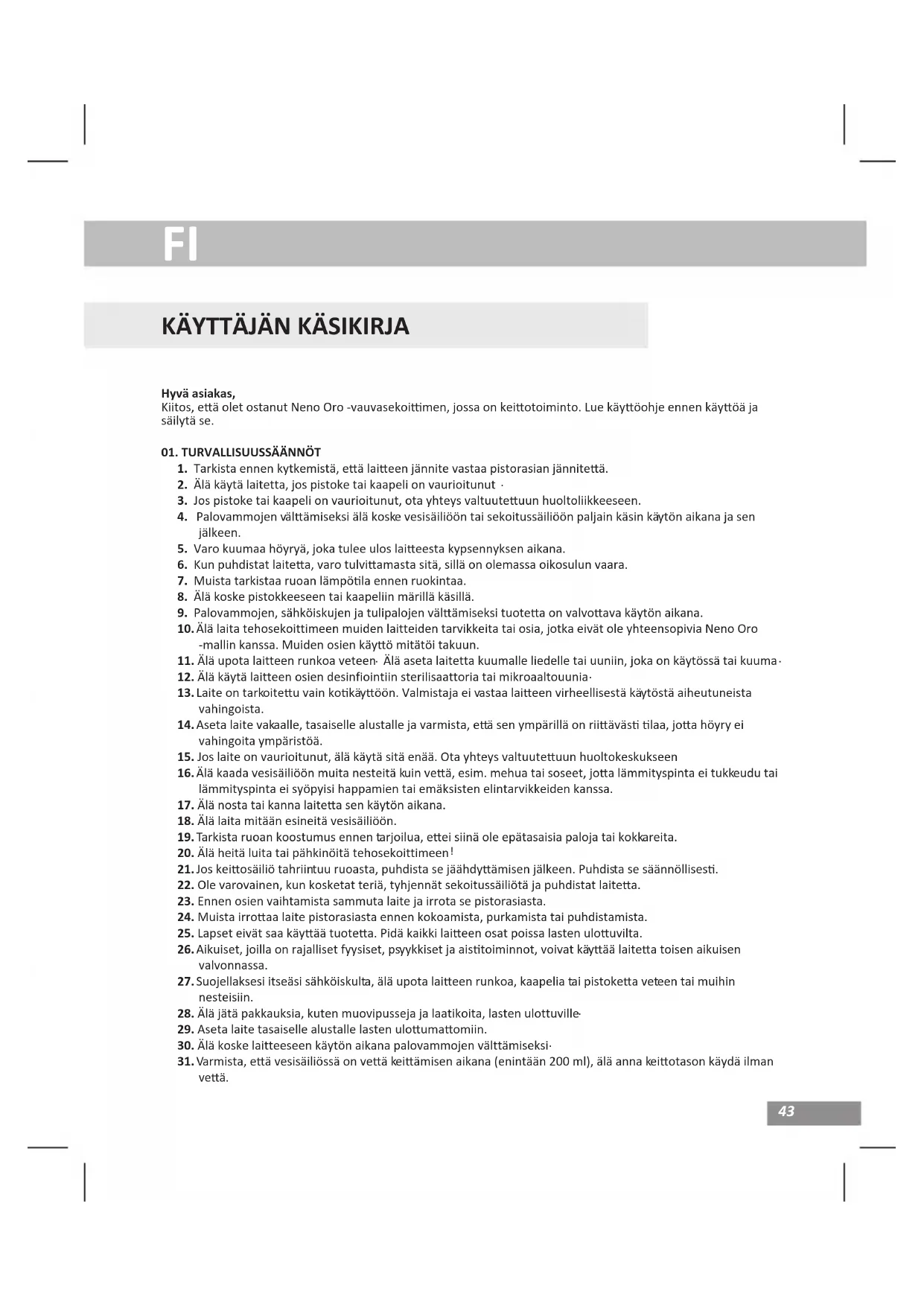 Hyvä asiakas, Kiitos, eä olet ostanut Neno Oro -vauvasekoimen, jossa on keiotoiminto. Lue käyöohje ennen käyöä ja säilytä se.