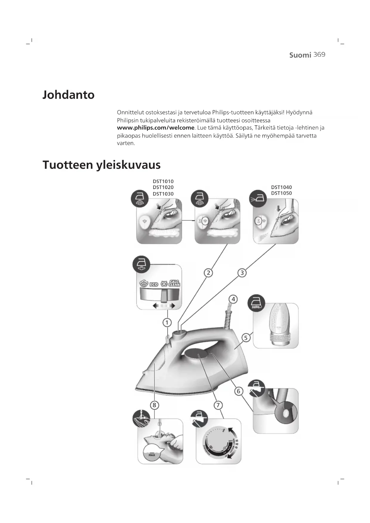 1000 Series DST1020 - Silitysrauta PHILIPS - Ilmainen käyttöohje ja opas