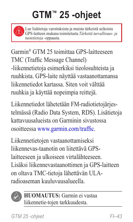 KÄYTTÖOHJE GTM 25 GARMIN