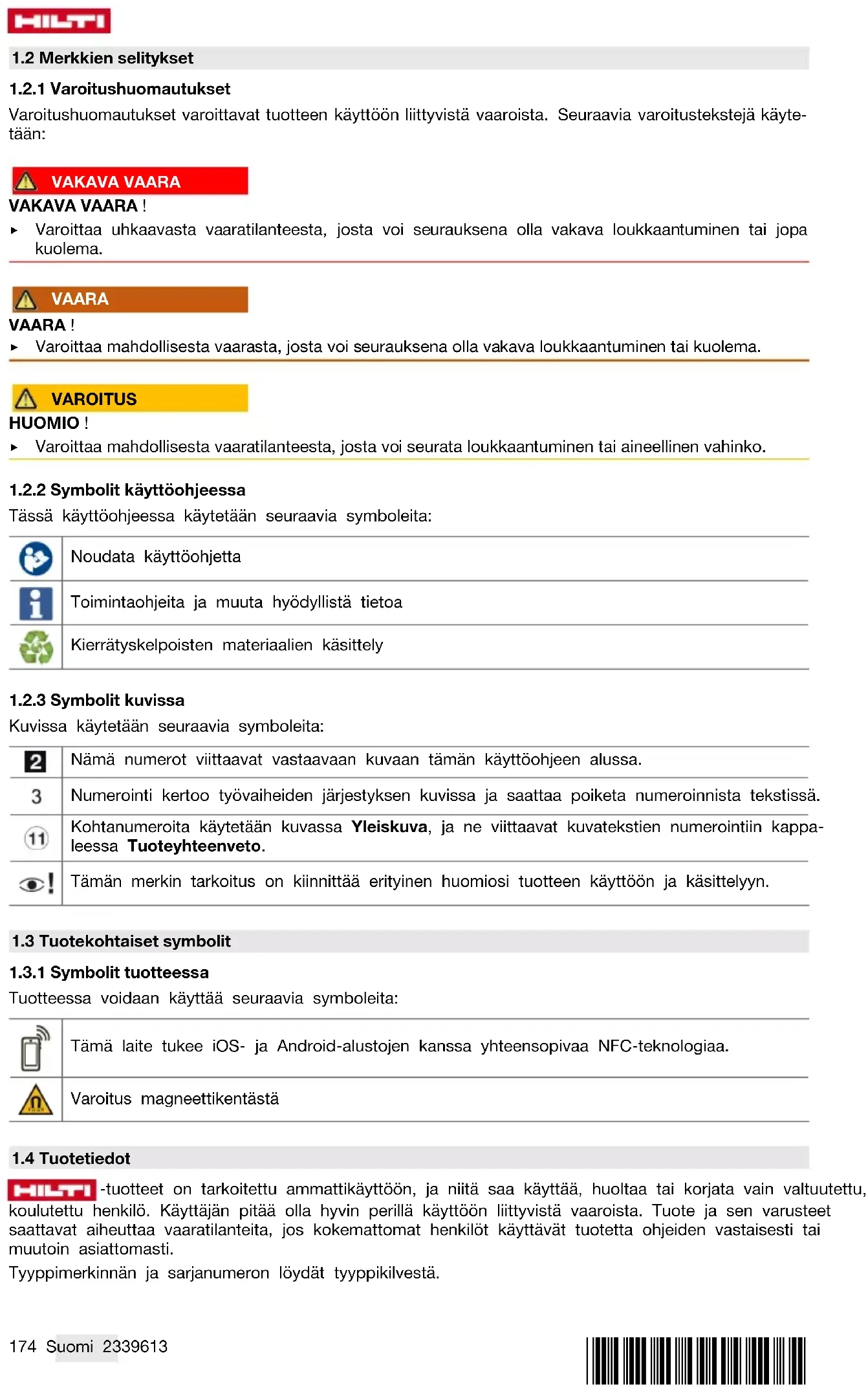 1.2.2 Symbolit käyttöohjeessa