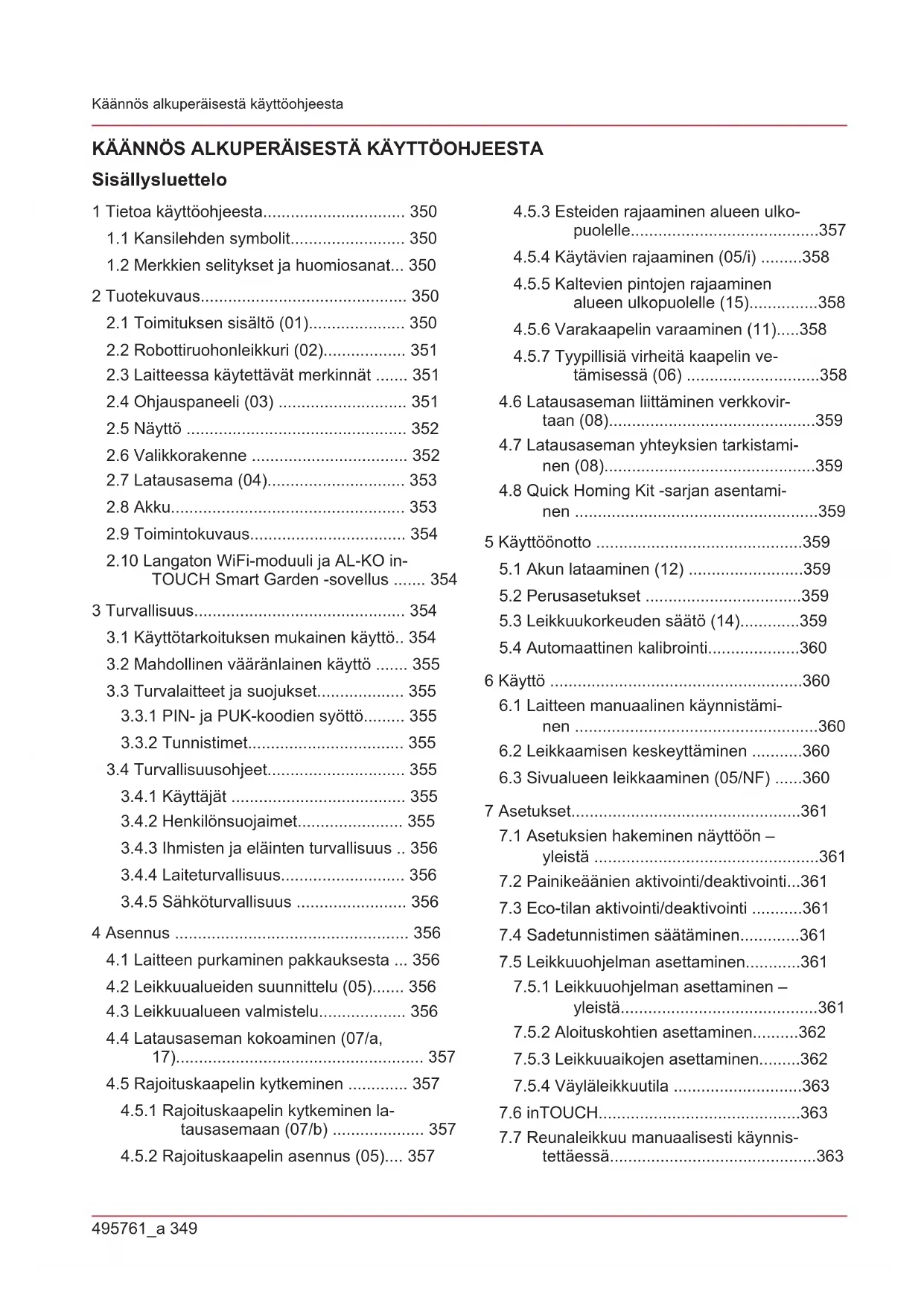 12.1 Robottiruohonleikkurin säilytys .......... 369