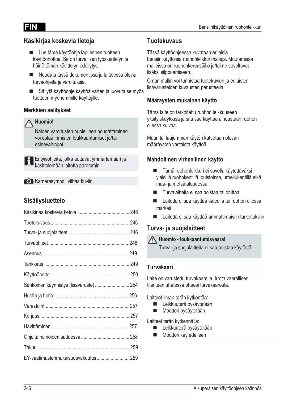 Turva- ja suojalaitteita ei saa poistaa kaytostä!