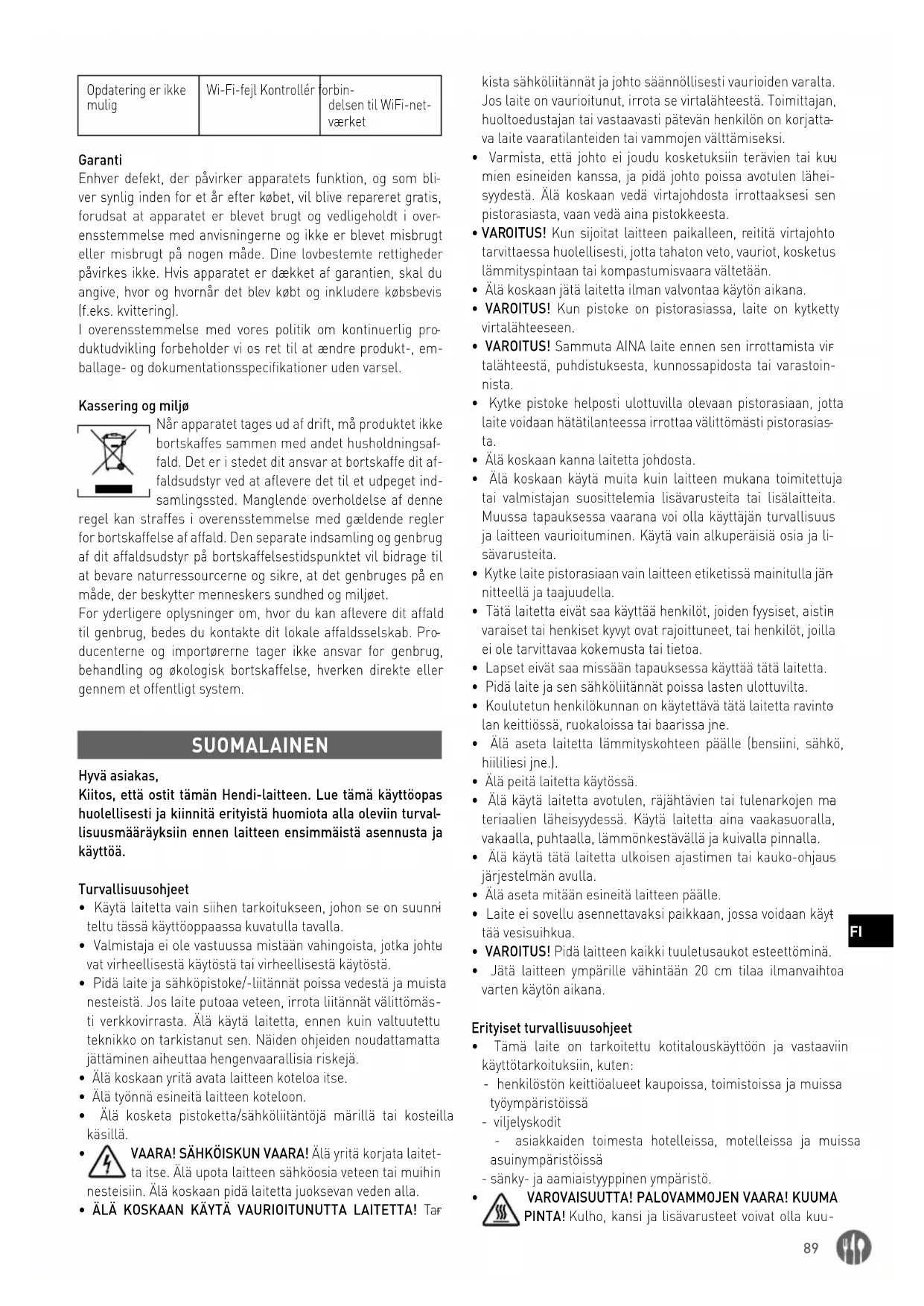 ducenterne og importørerne tager ikke ansvar for genbrug, behandling og økologisk bortskaffelse, hverken direkte eller gennem et offentligt system. SUOMALAINEN Hyvä asiakas, Kiitos, että ostit tämän Hendi-laitteen. Lue tämä käyttöopas huolellisesti ja kiinnitä erityistä huomiota alla oleviin turval