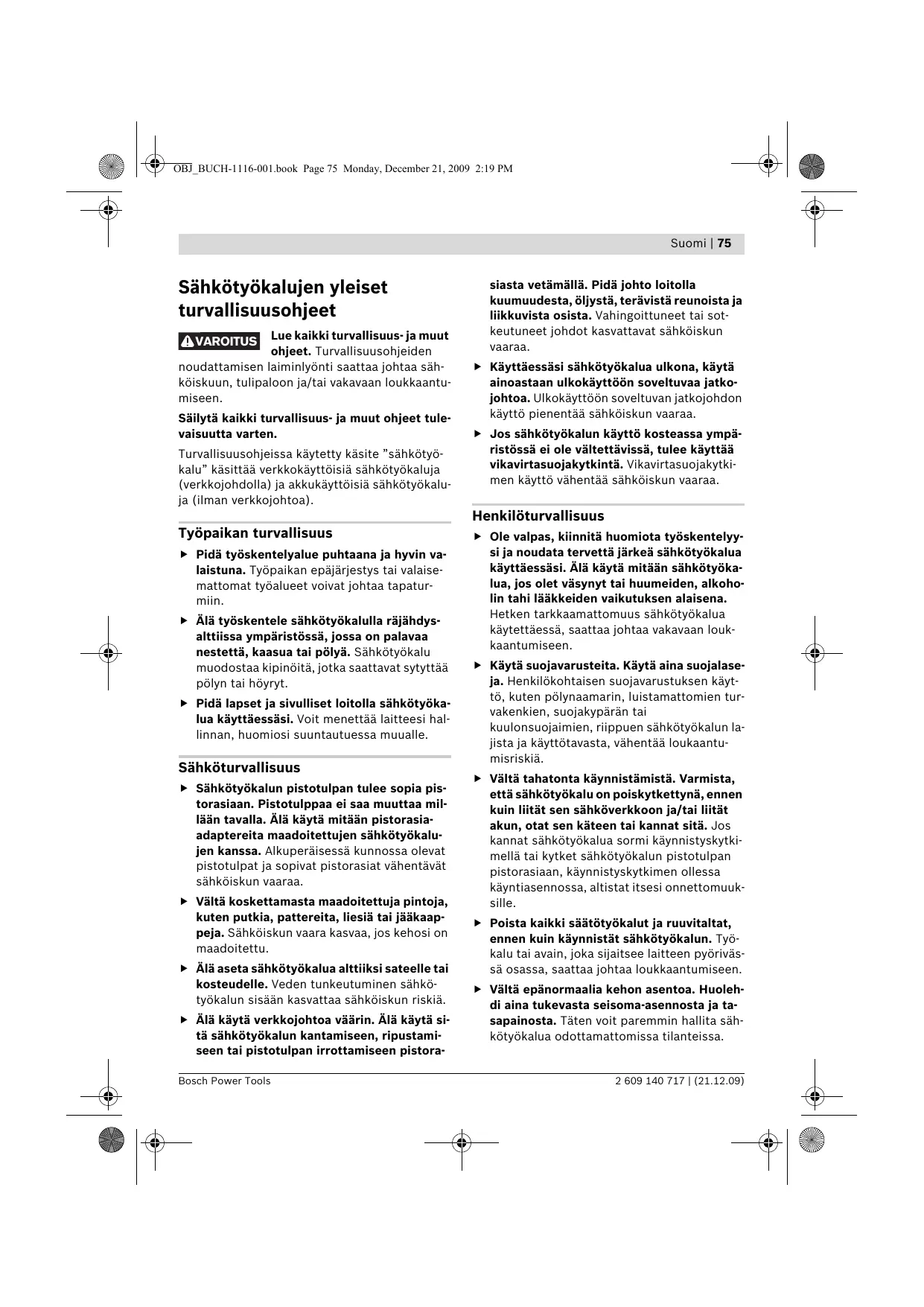 > _Käytä kuulonsuojaimia kun iskuporaat, Me- lu saattaa aiheuttaa kuulon menetystä. 2609 140 717 | (21.12.09) Bosch Power Tools