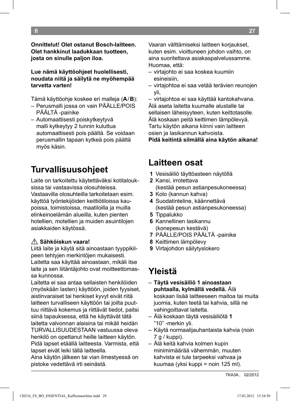 Téléchargez la notice de votre Kahvinkeitin au format PDF gratuitement ! Retrouvez votre notice TKA3A014 - BOSCH et reprennez votre appareil électronique en main. Sur cette page sont publiés tous les documents nécessaires à l'utilisation de votre appareil TKA3A014 de la marque BOSCH.