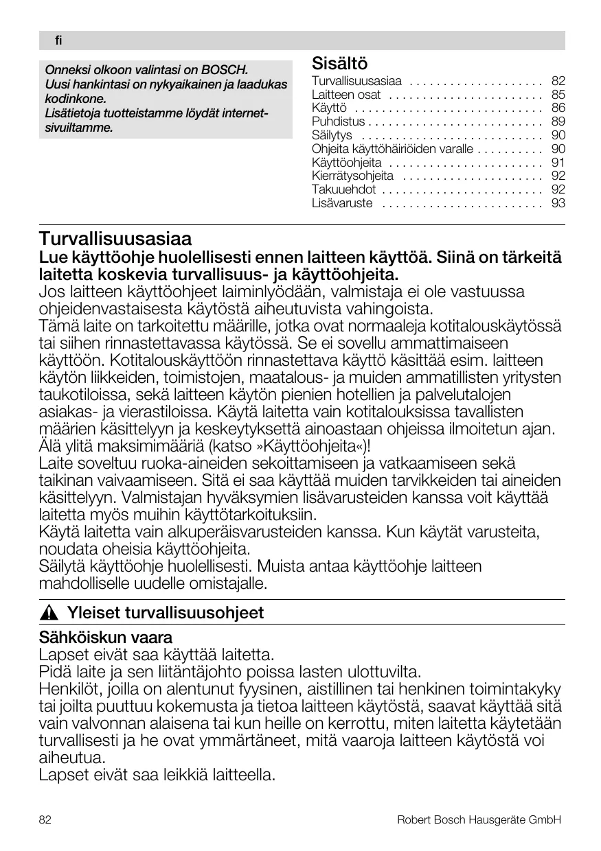 MUM5 - Monitoimikone BOSCH - Notice d'utilisation et mode d'emploi gratuit