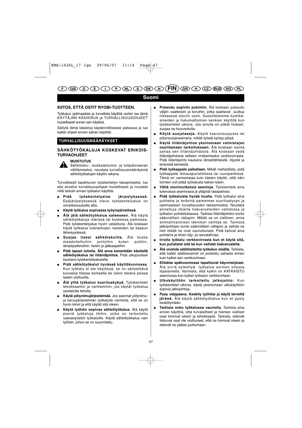 KÄYTTÖOHJE EMS-1426L RYOBI