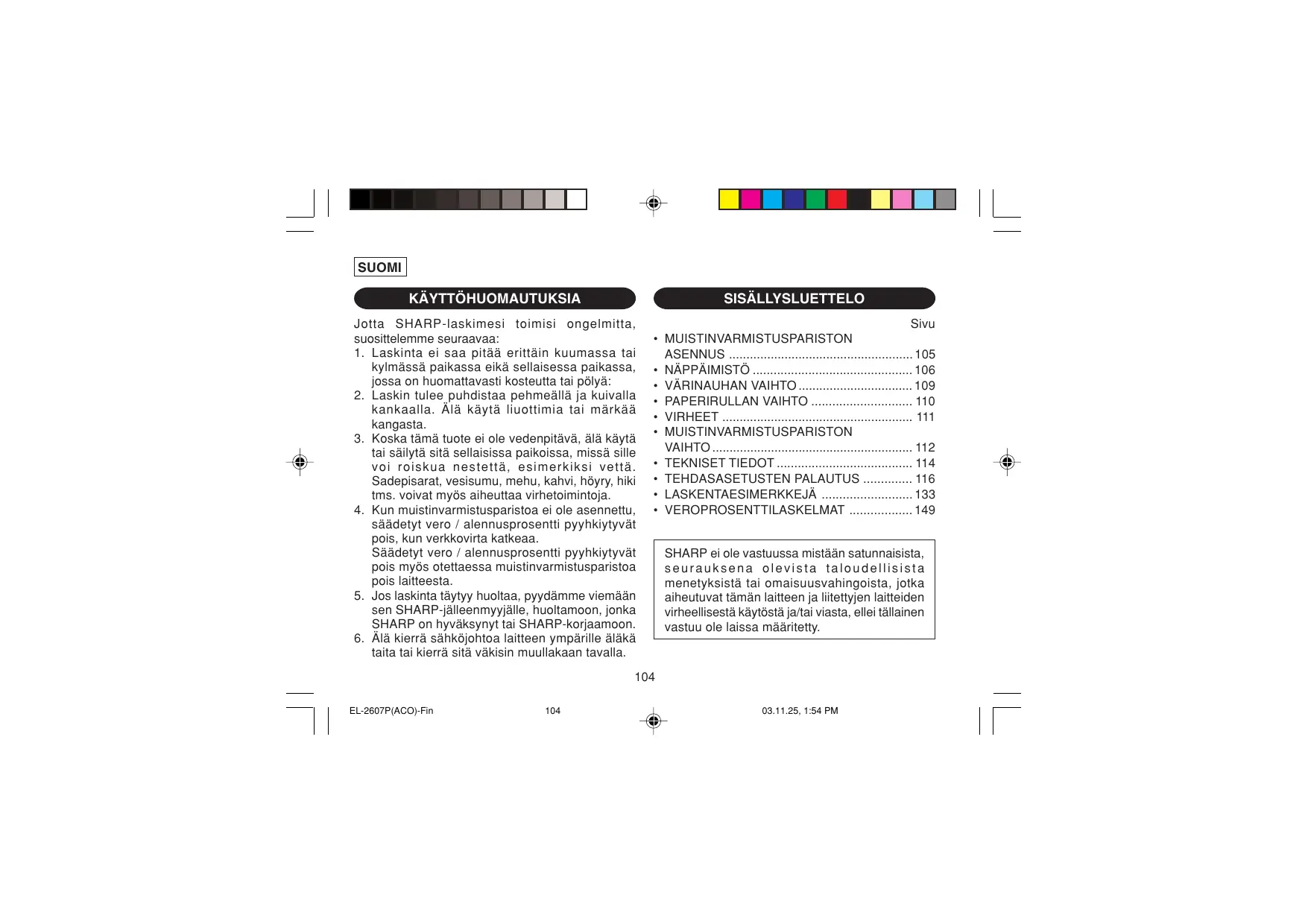 KÄYTTÖOHJE EL-2607P SHARP