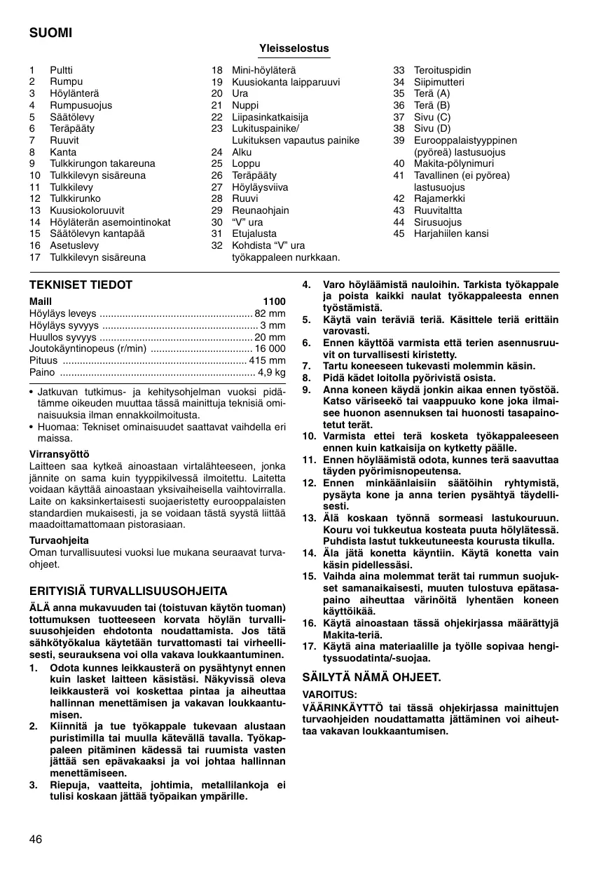 Retrouvez gratuitement la notice de l'appareil 1100 MAKITA au format PDF.