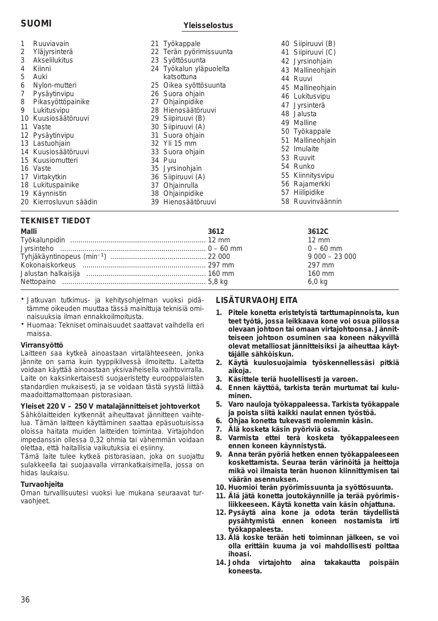 KÄYTTÖOHJE 3612C MAKITA