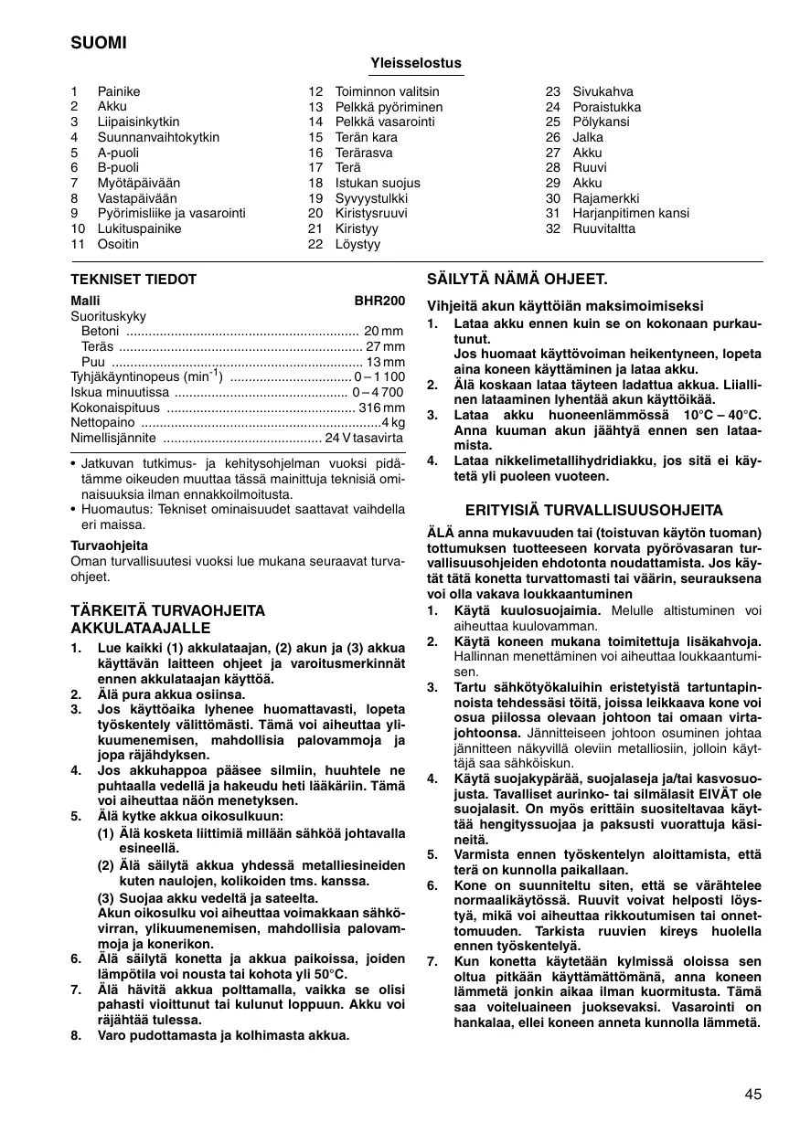 KÄYTTÖOHJE BHR200WAE MAKITA