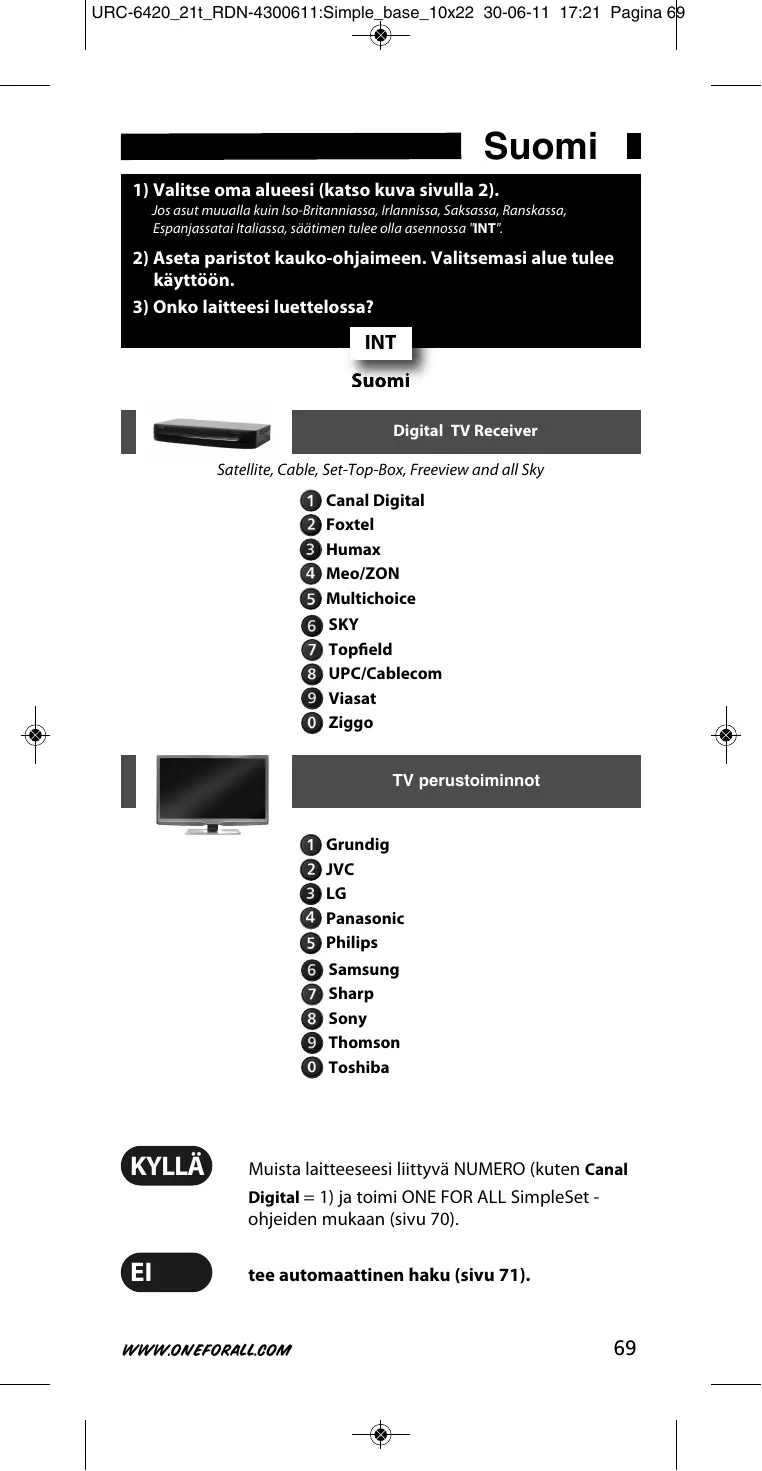 KÄYTTÖOHJE URC-6420 ONE FOR ALL