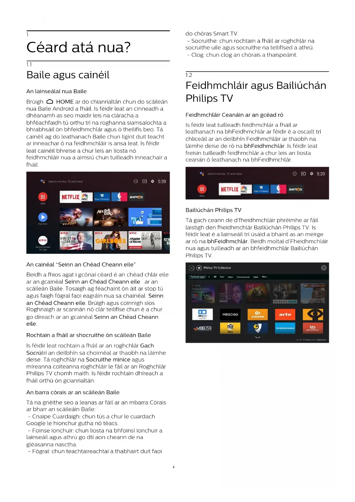 1.2 Feidhmchláir agus Bailiúchán Philips TV 4