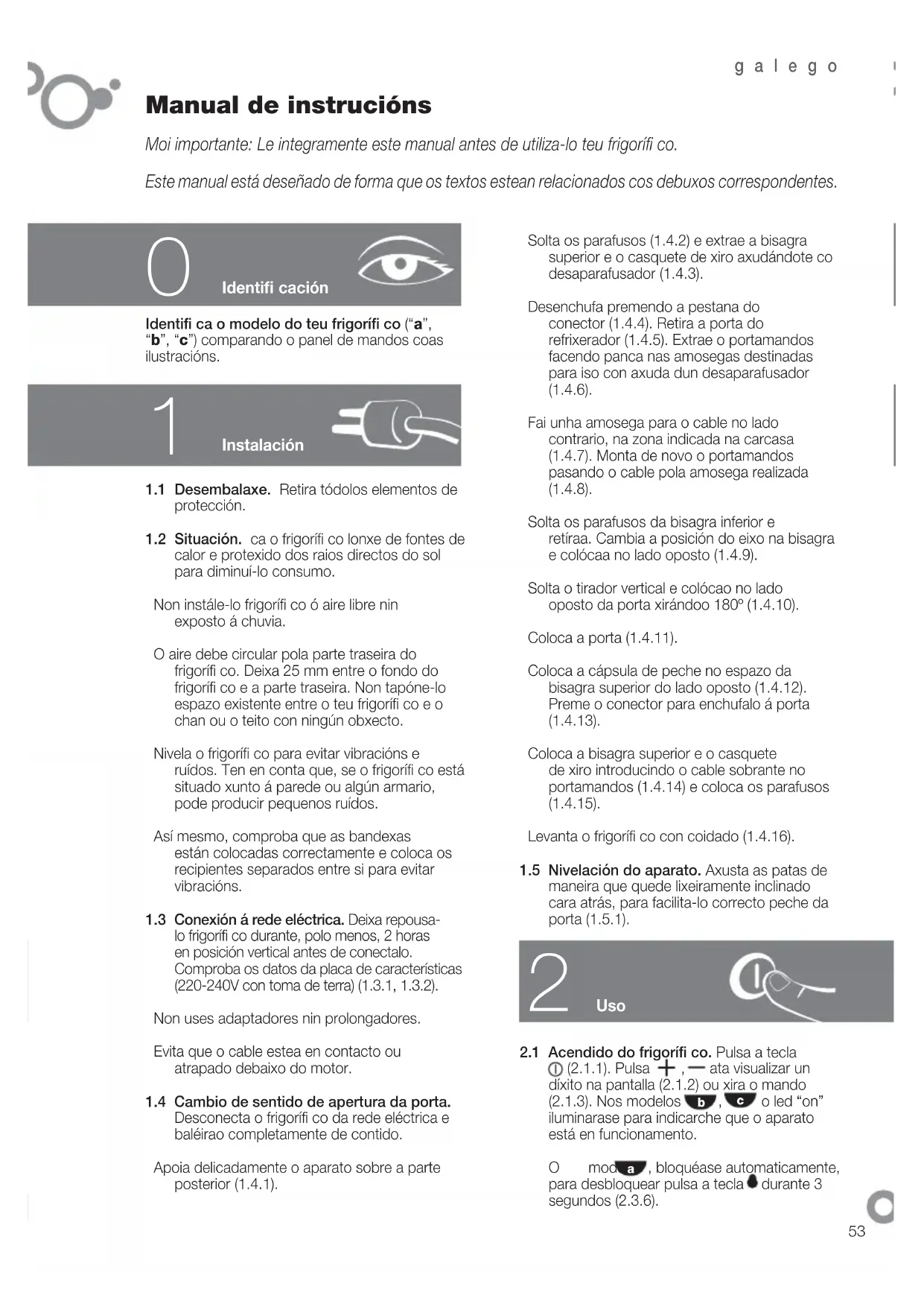 1.3 Conexión á rede eléctrica. Deixa repousa-