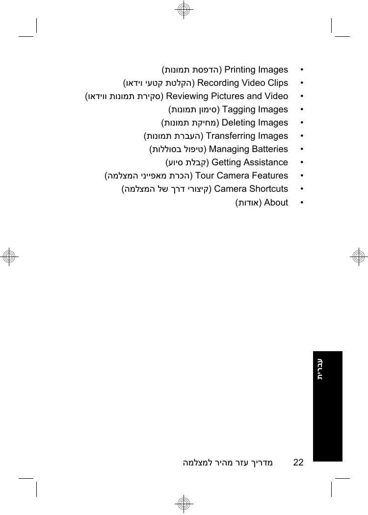 • Des descriptions de l'ensemble des fonctionnalités de l'appareil photo • Des informations relatives à la batterie, notamment : • L'extension de son autonomie • Une description des icônes d'indication de charge • Résolution des problèmes • Obtenir une assistance auprès de HP