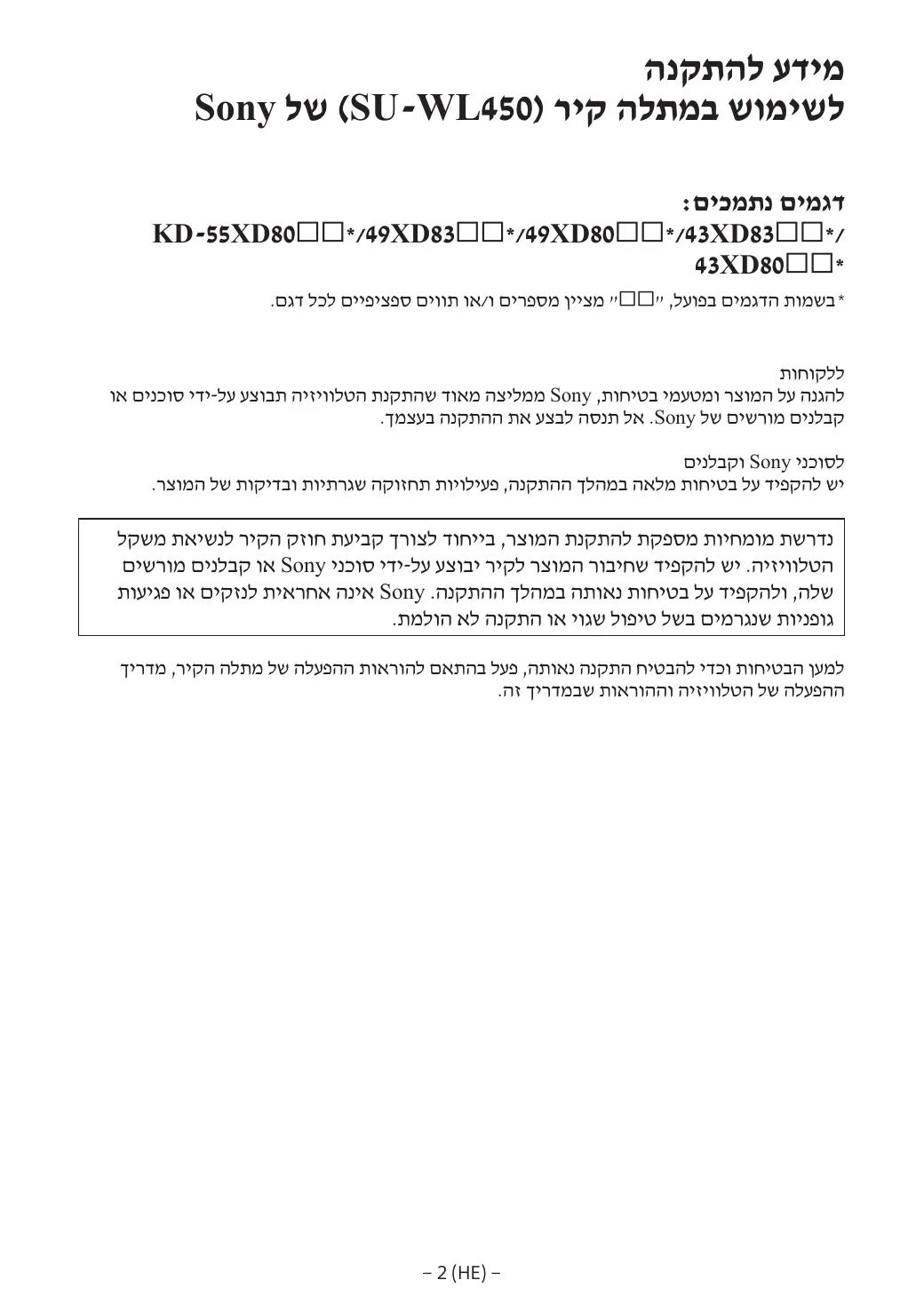 Téléchargez la notice de votre טלוויזיה au format PDF gratuitement ! Retrouvez votre notice KD-43XD8005 - SONY et reprennez votre appareil électronique en main. Sur cette page sont publiés tous les documents nécessaires à l'utilisation de votre appareil KD-43XD8005 de la marque SONY.