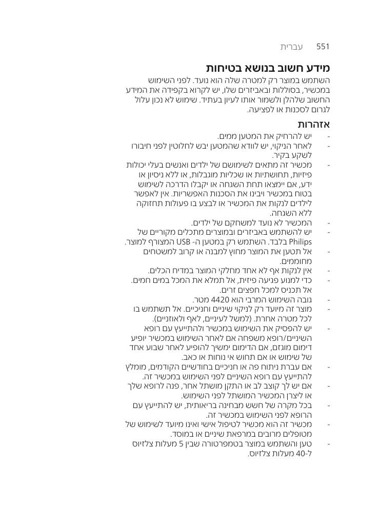 Cet appareil peut être utilisé par des enfants, des personnes dont les capacités physiques, sensorielles ou intellectuelles sont réduites ou des personnes manquant d'expérience et de connaissances, à condition que ces enfants ou personnes soient sous surveillance ou qu'ils aient reçu des instructions quant à l'utilisation sécurisée de l'appareil et qu'ils aient pris connaissance des dangers encourus. Le nettoyage et l'entretien ne doivent pas être effectués par des enfants sans surveillance. Les enfants ne doivent pas jouer avec l'appareil. Utilisez exclusivement des accessoires ou des consommables Philips d’origine. Utilisez uniquement le chargeur USB fourni avec le produit. Ne chargez pas le produit en extérieur ou à proximité de surfaces chauffantes. Ne nettoyez aucune pièce du produit au lave-vaisselle. Pour éviter les blessures physiques, ne remplissez pas le réservoir d'eau chaude. Ne mettez pas d'objets étrangers dans le réservoir. L'altitude d'utilisation maximale est de 4 420 mètres. Ce produit a été conçu uniquement pour le nettoyage des dents et des gencives. Ne l'utilisez jamais à d'autres fins. (par exemple, pour les yeux, le nez ou les oreilles).
